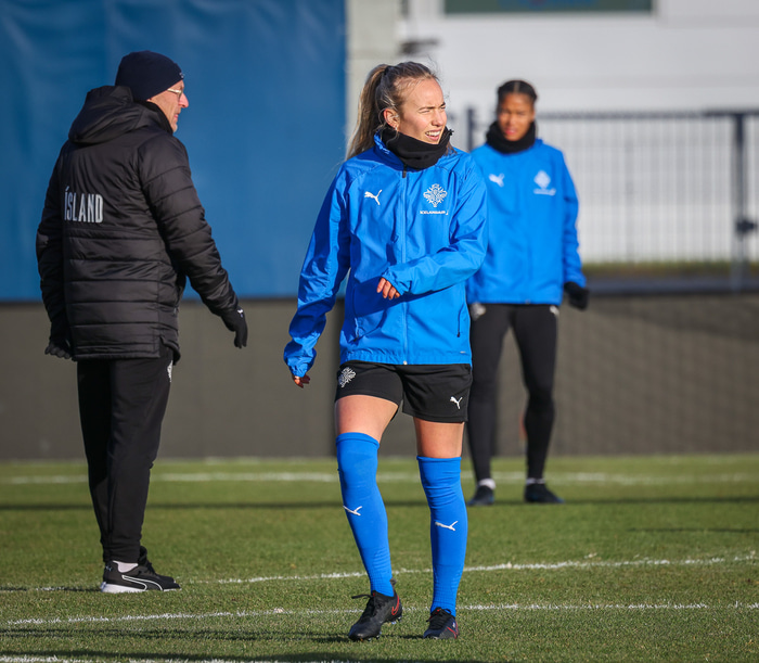 Þrír leikmenn hafa spilað í hægri bakvarðarstöðunni frá því að Þorsteinn Halldórsson tók við sem þjálfari kvennalandsliðsþjálfari í upphafi árs. Bjarni Helgason, blaðamaður hjá Morgunblaðinu, spurði Steina út í stöðuna í Teams-viðtali í dag.
