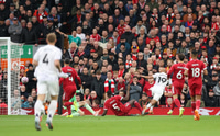 Bryan Mbeumo kom Man Utd yfir eftir rúmlega mínútna leik. Cody Gakpo fór mikinn í liði Liverpool og skaut þrisvar sinnum í tréverkið áður en hann jafnaði loks metin.