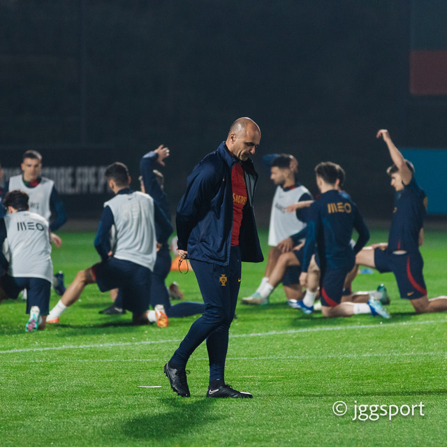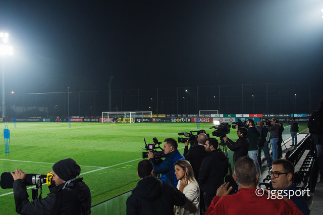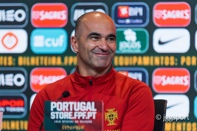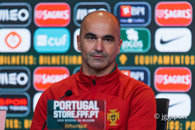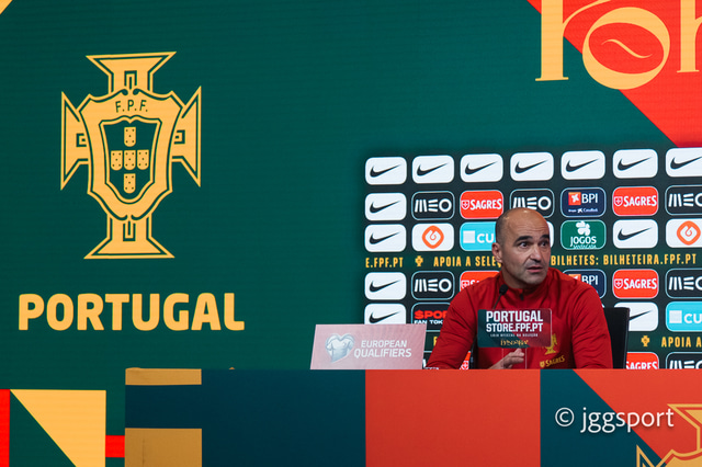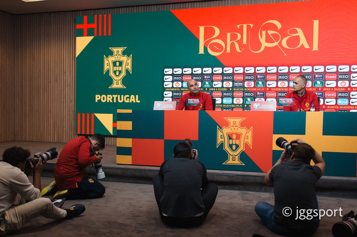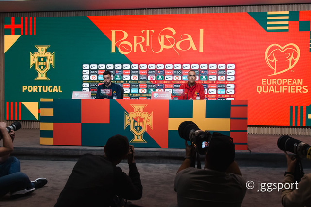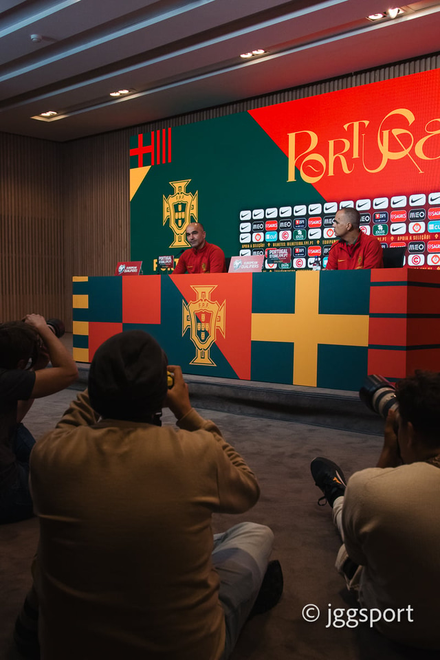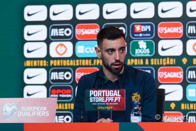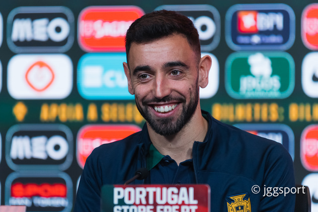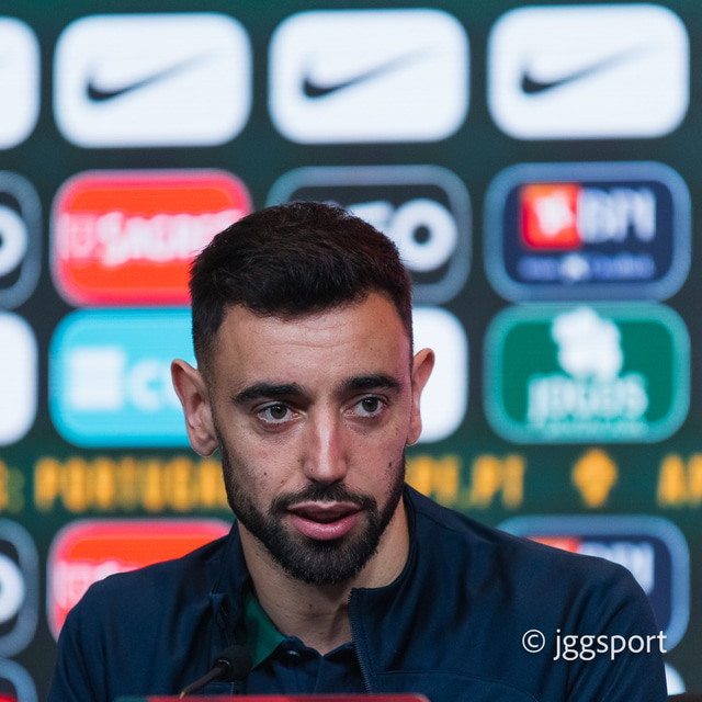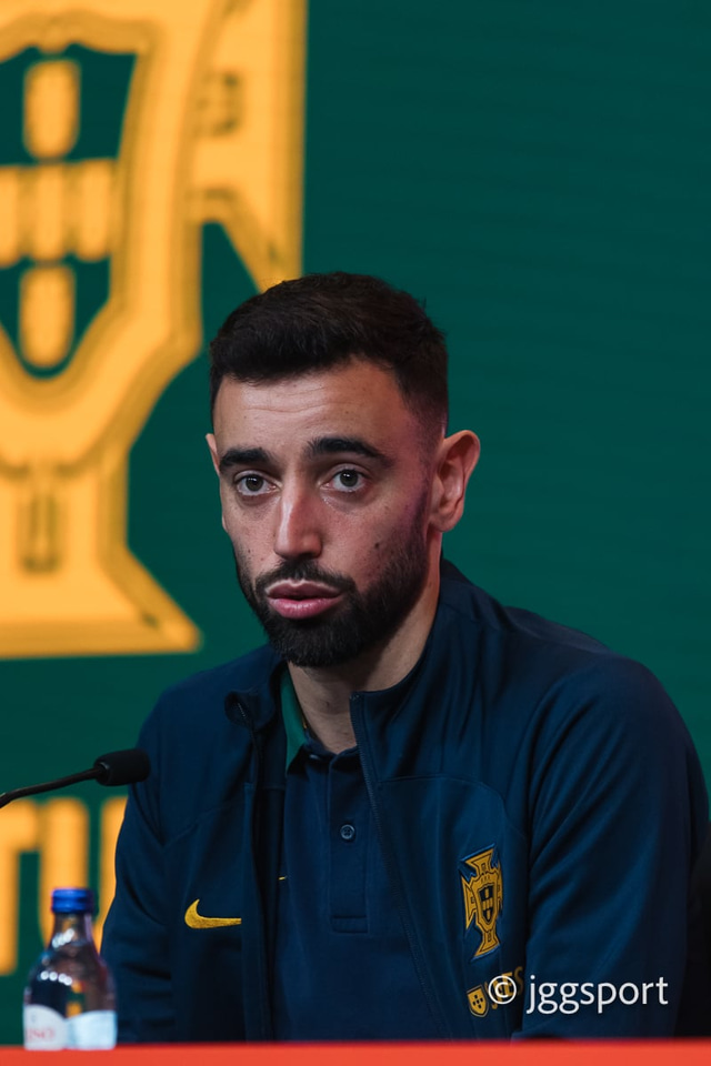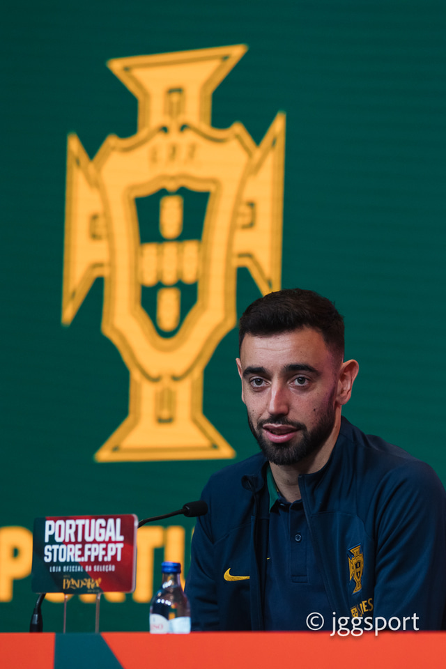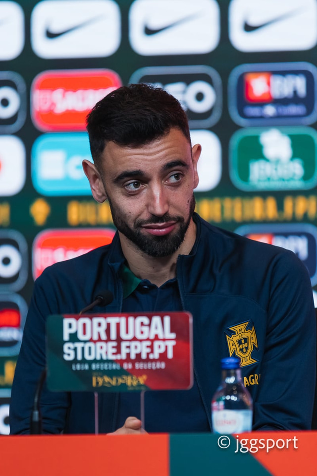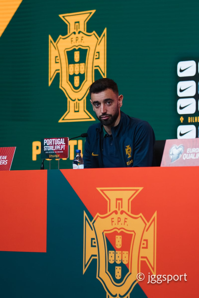 Eftir æfinguna í gær fór fram fréttamannafundur þar sem Bruno Fernandes sat fyrir svörum auk landsliðsþjálfarans Roberto Martínez.