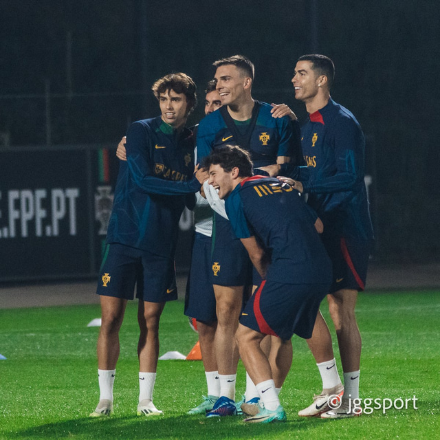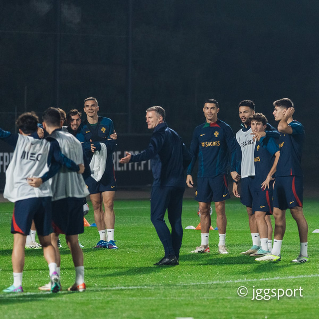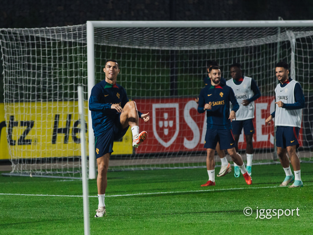 Portúgalska landsliðið æfði ekki á keppnisvellinum í gær heldur á æfingasvæði sínu. Jónína Guðbjörg Guðbjartsdóttir ljósmyndari mætti á svæðið og tók meðfylgjandi myndir.