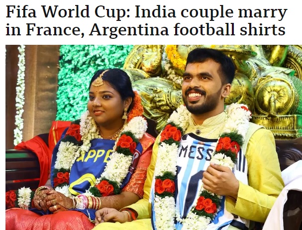 Par sem haldið er miklum fótboltaáhuga gifti sig í Kerala í Indlandi í gær, á sama degi og Argentína og Frakkland mættust í úrslitaleik HM. Athöfnin fór fram áður en flautað var til leiks í Katar.