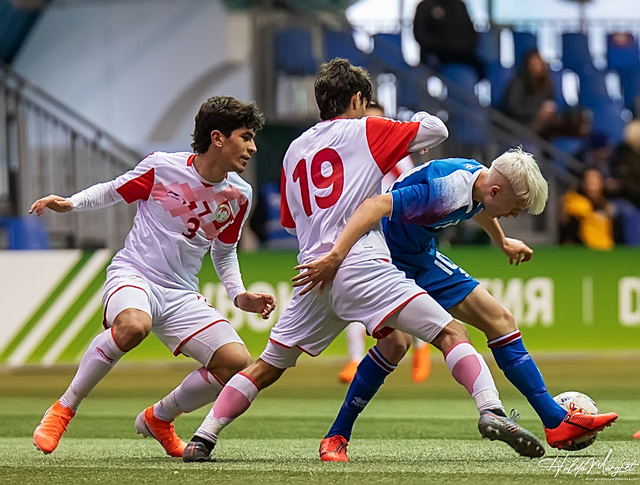 U17 ára landslið karla lék sinn fyrsta leik í æfingamótið í Minsk í Hvíta Rússlandi í gær þegar liðið tapaði 1 - 2 gegn Tadsíkistan. Danijel Dejan Djuric skoraði mark Íslands úr víti á 55. mínútu. Hér að neðan er myndaveisla Huldu Margrétar úr leiknum.