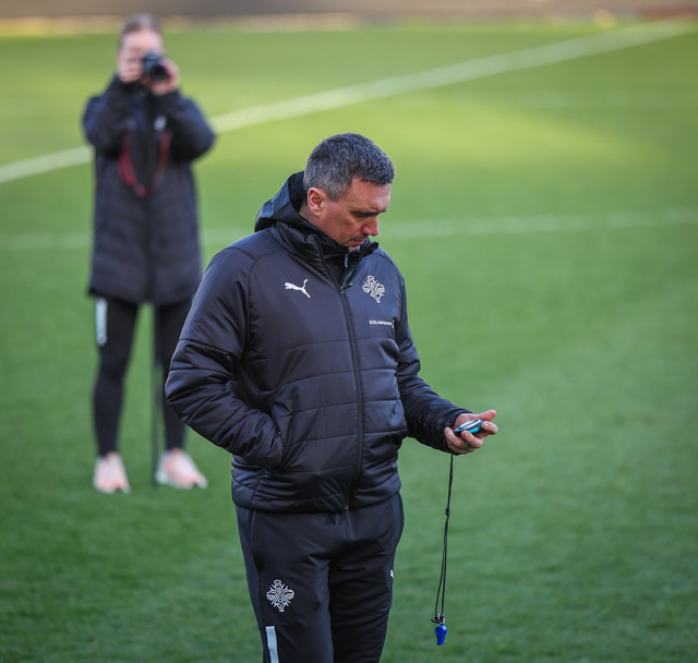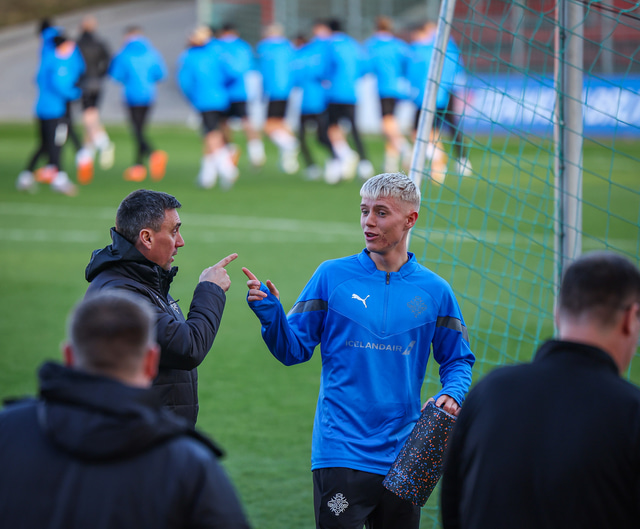 Um var að ræða létta æfingu hjá íslenska liðinu í dag þar sem flestir leikmenn eru að ná úr sér ferðalaginu og/eða leikjum helgarinnar með félagsliðum sínum.