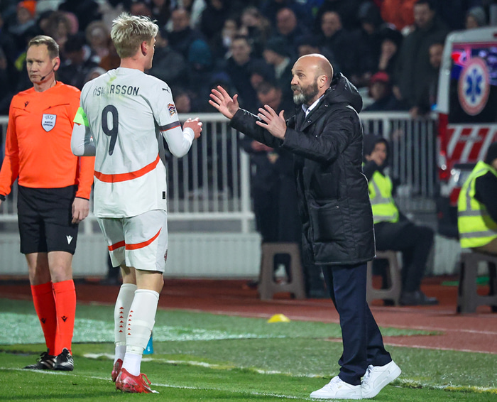 Arnar tók við af Åge Hareide í byrjun ársins og er strax farinn að miðla sinni hugmyndafræði til strákanna en liðið hóf leikinn í 3-4-2-1 leikkerfi með þá Albert Guðmundsson, Orra Stein Óskarsson, Andra Lucas Guðjohnsen og Hákon Arnar Haraldsson í byrjunarliðinu.