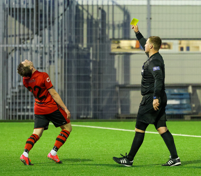 Helgi Ólafsson var á flautunni og dæmdi vítaspyrnu fyrir litlar sakir en atvikið er hægt að sjá hér fyrir neðan.