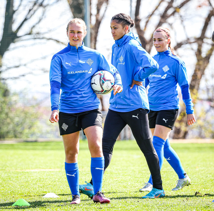 Spurð út í samkeppnina í landsliðinu, og þá sérstaklega um stöðu á miðsvæðinu: „Ég held það sé bara erfitt að komast í liðið á mörgum stöðum. Við erum með ótrúlega flottan hóp, 23 leikmenn sem geta allir spilað. Þetta verður hausverkur fyrir Steina."