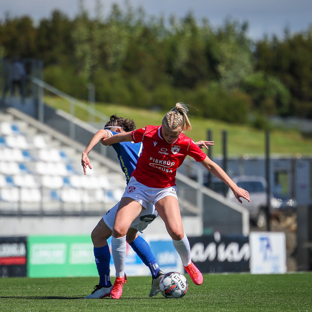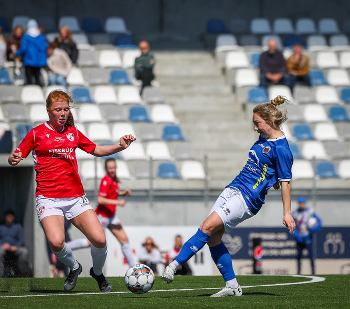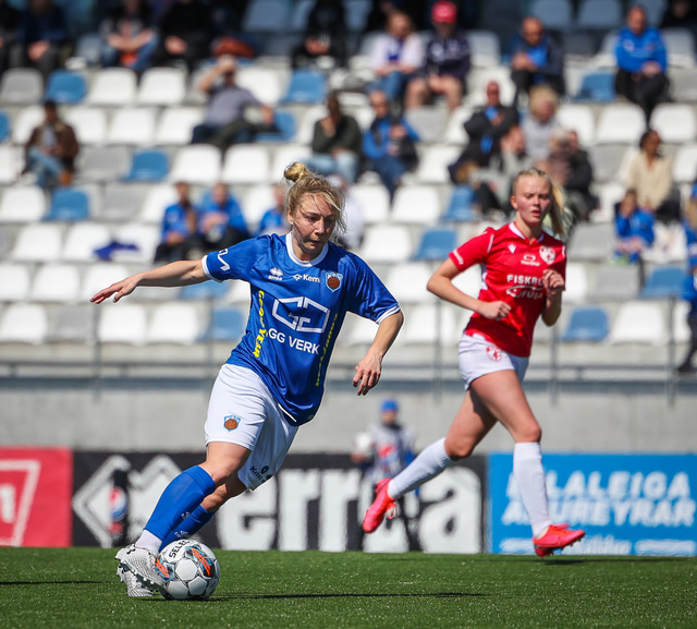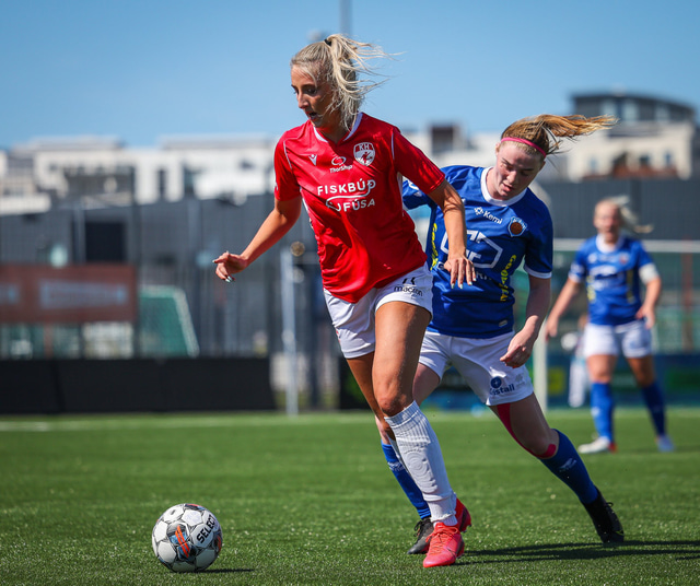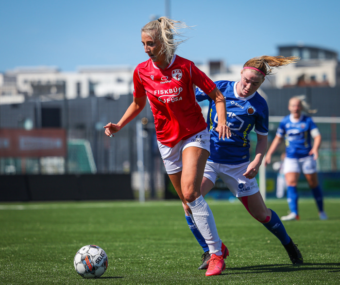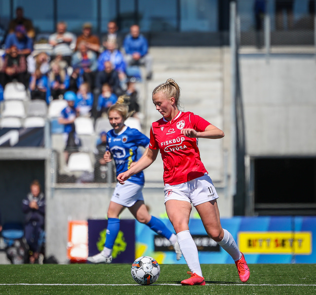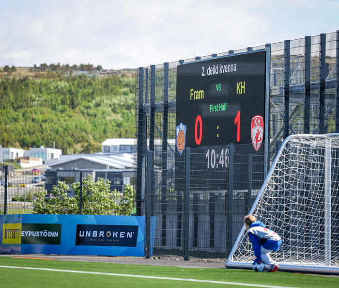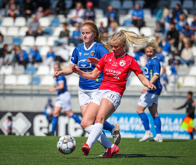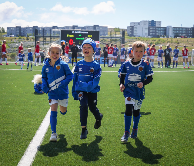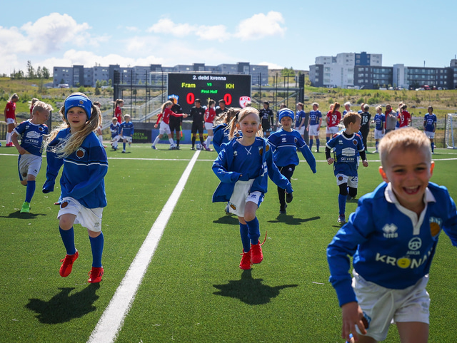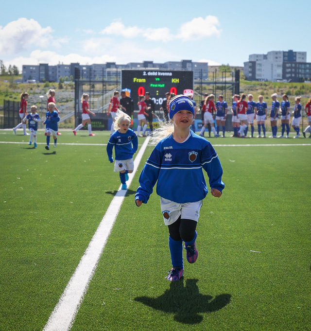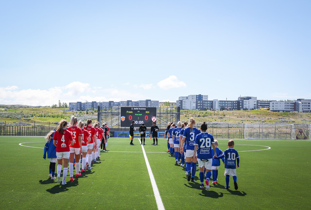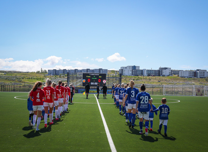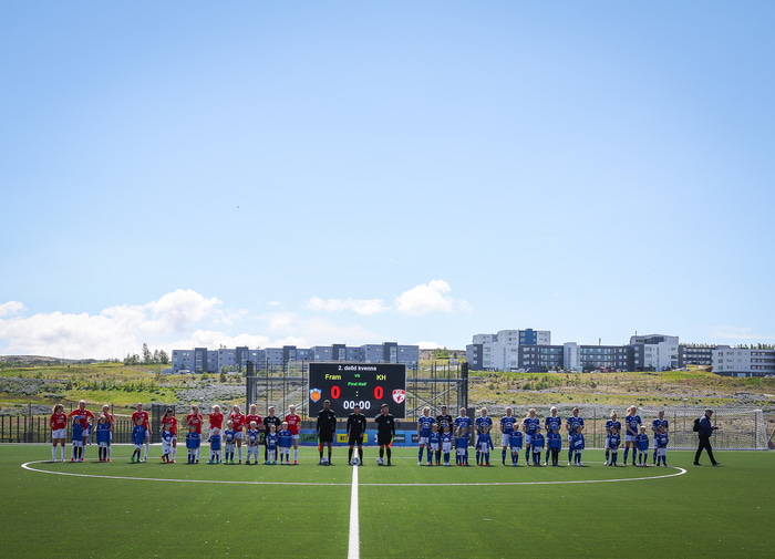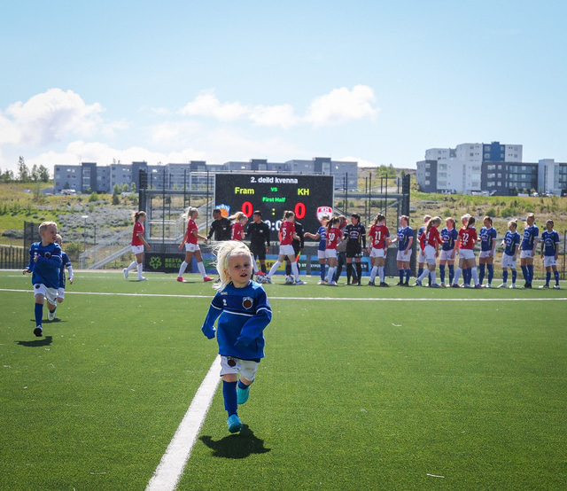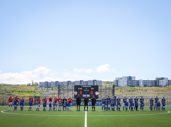 Fram vann á laugardaginn opnunarleikinn á nýjum og glæsilegum leikvangi félagsins í Úlfarsárdal. Liðið vann þá 3 - 2 sigur á KH í 2. deild kvenna. Hér að neðan má sjá fjölda mynda úr leiknum.