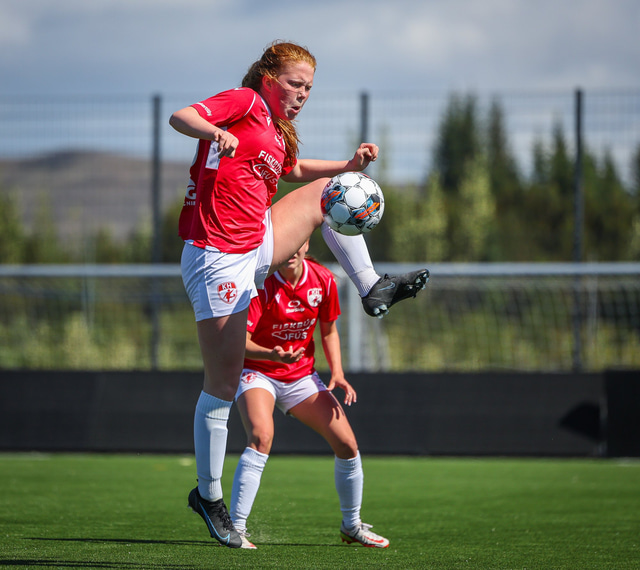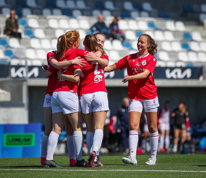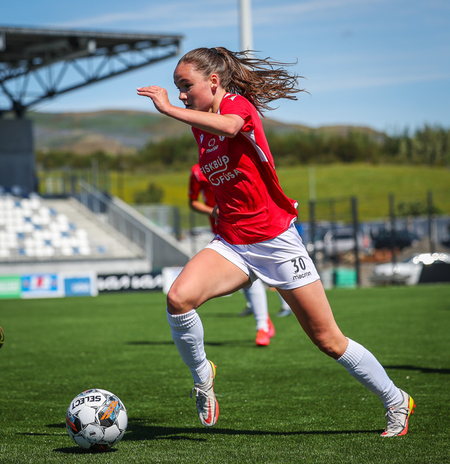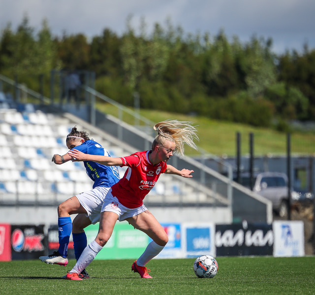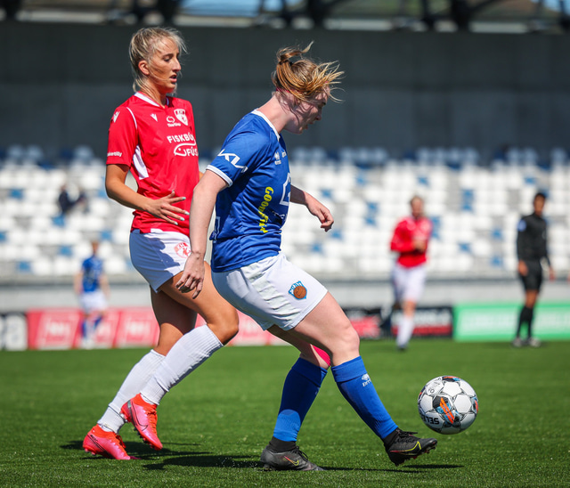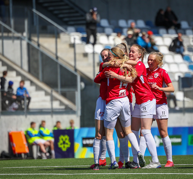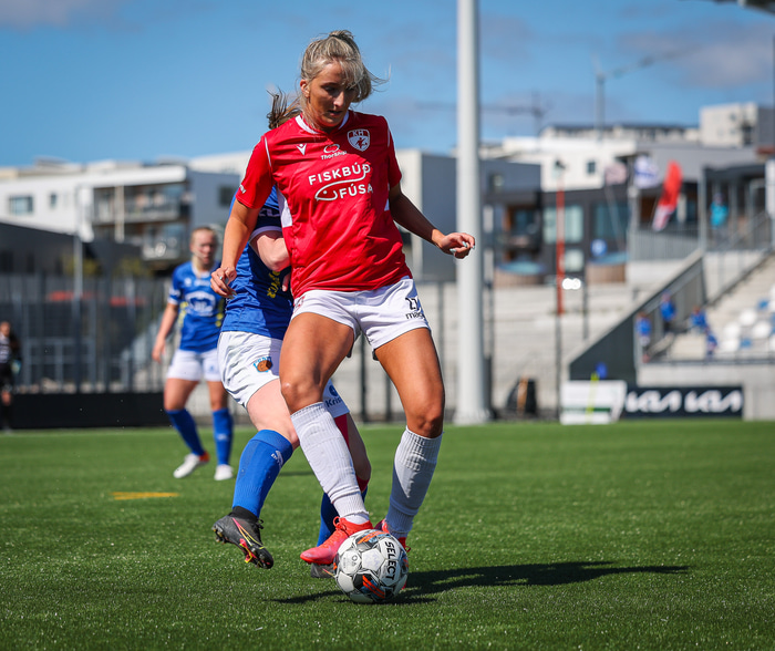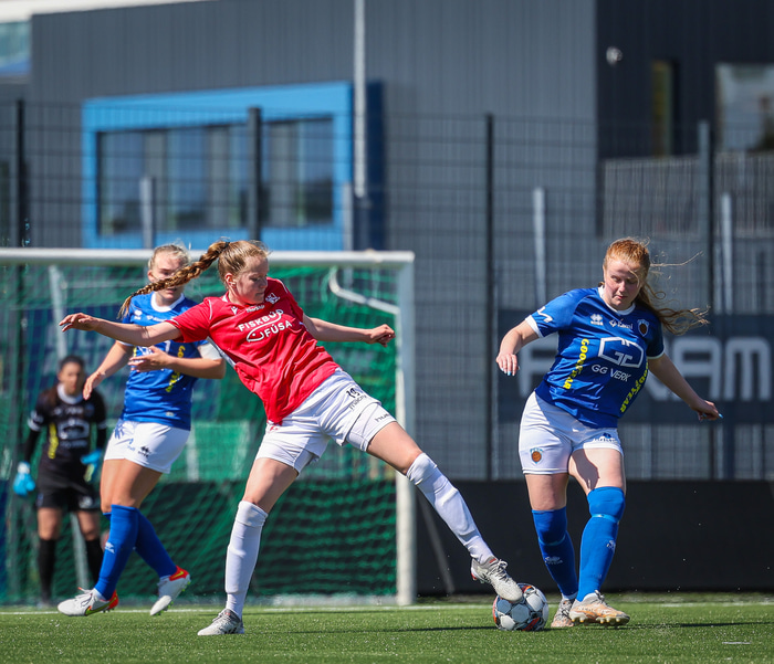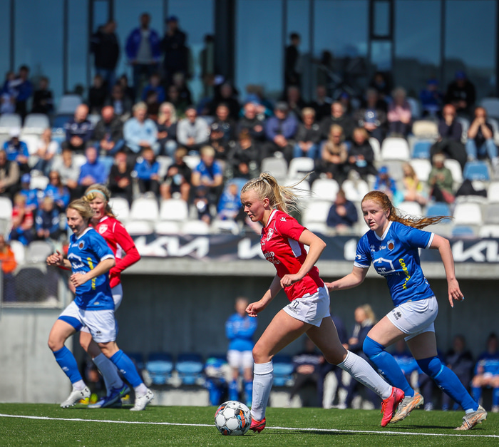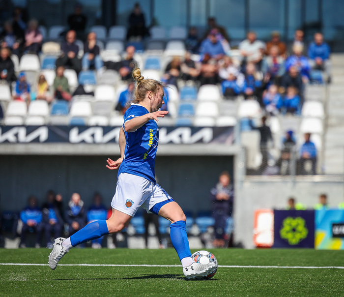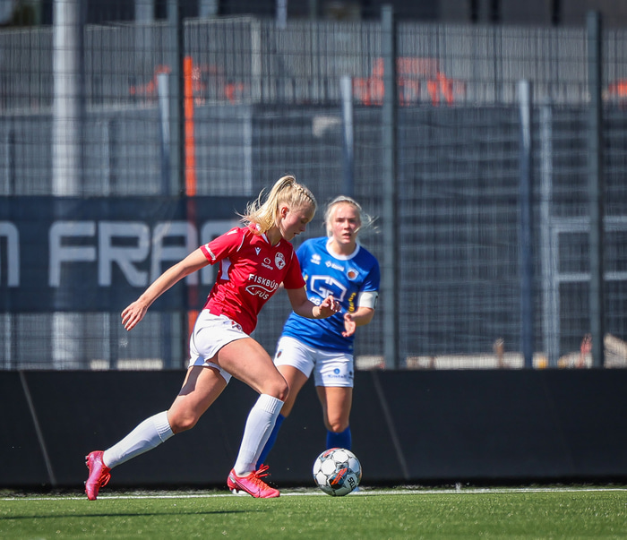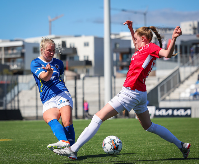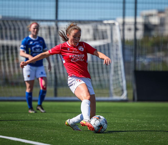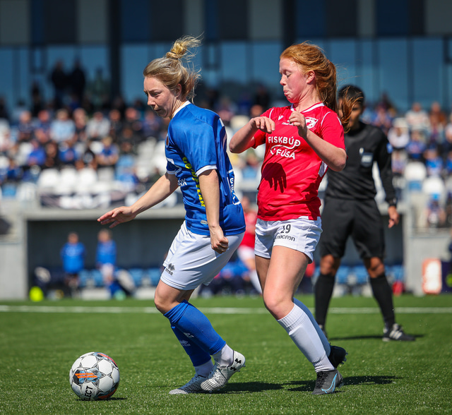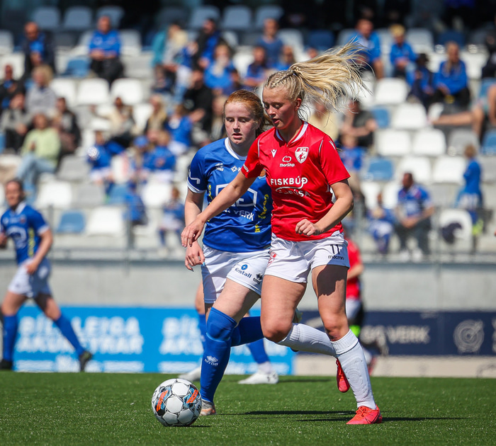Fram vann á laugardaginn opnunarleikinn á nýjum og glæsilegum leikvangi félagsins í Úlfarsárdal. Liðið vann þá 3 - 2 sigur á KH í 2. deild kvenna. Hér að neðan má sjá fjölda mynda úr leiknum.