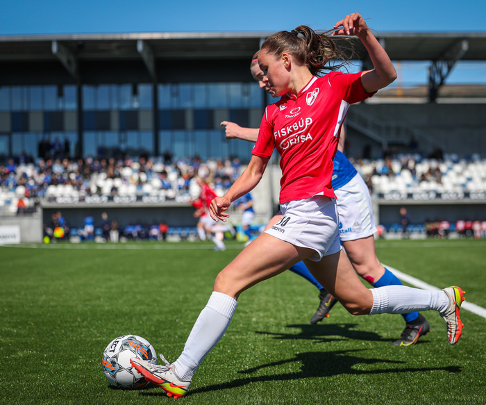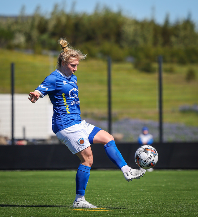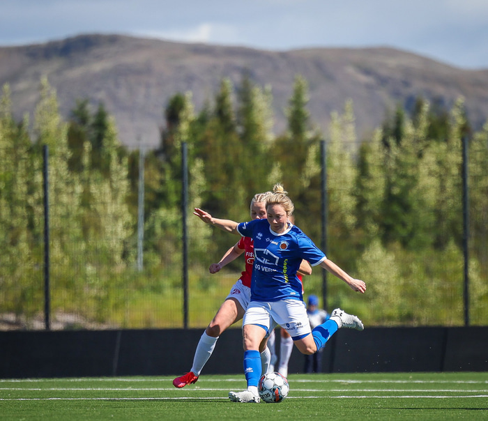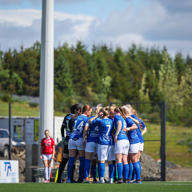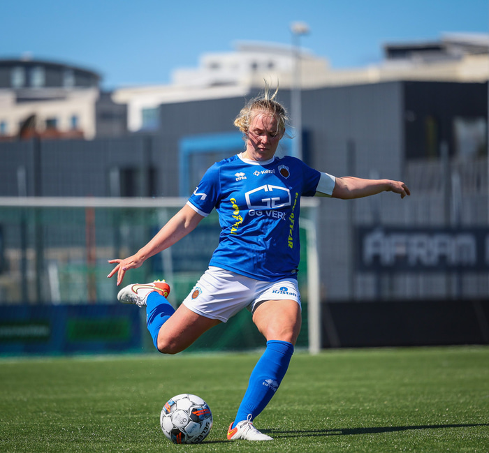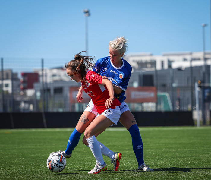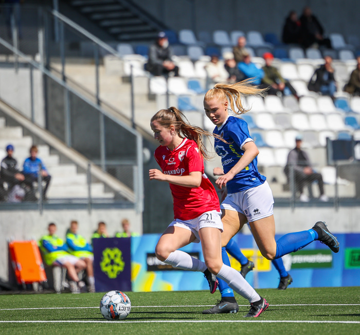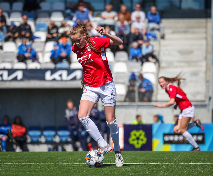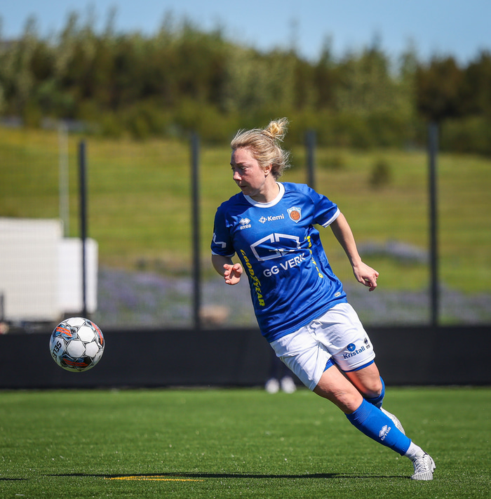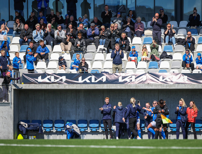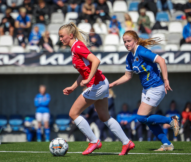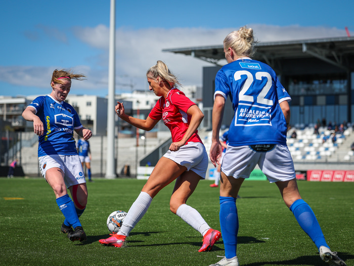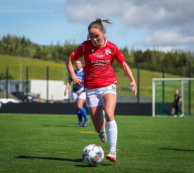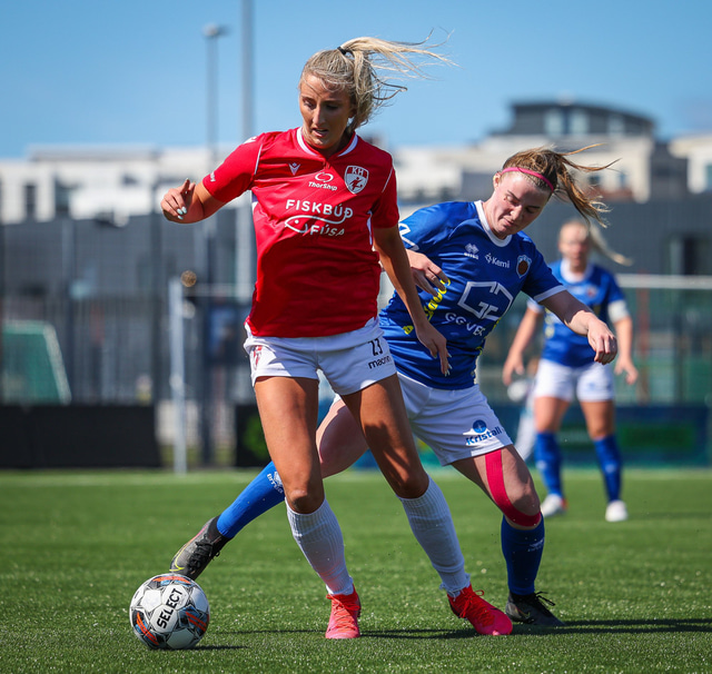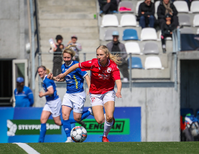 Fram vann á laugardaginn opnunarleikinn á nýjum og glæsilegum leikvangi félagsins í Úlfarsárdal. Liðið vann þá 3 - 2 sigur á KH í 2. deild kvenna. Hér að neðan má sjá fjölda mynda úr leiknum.