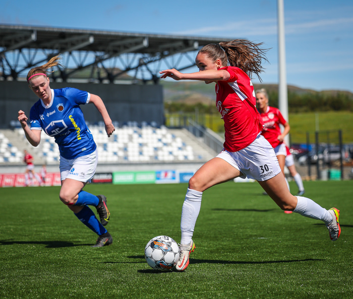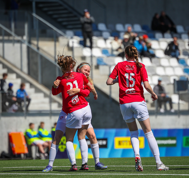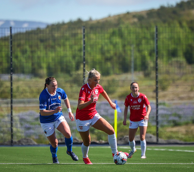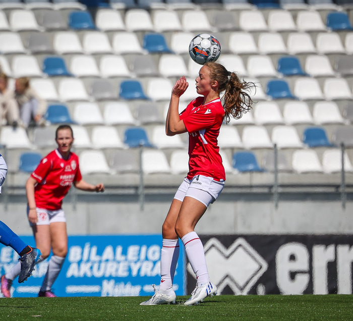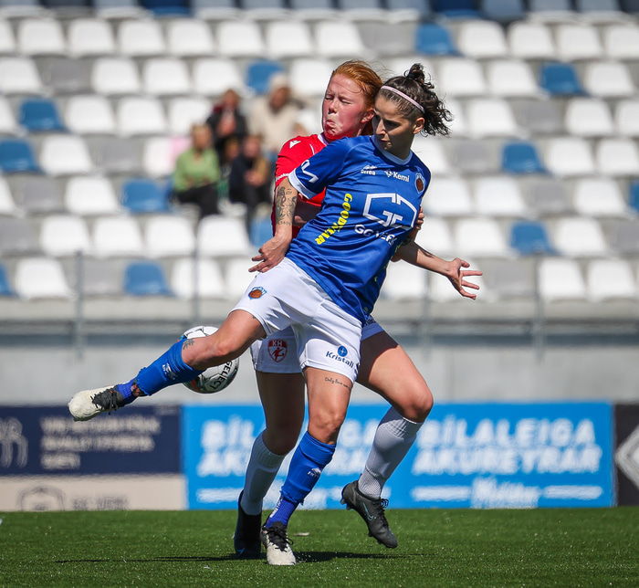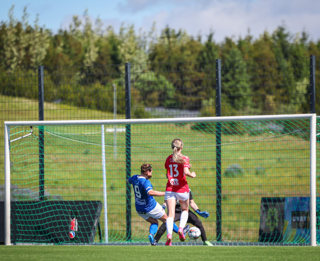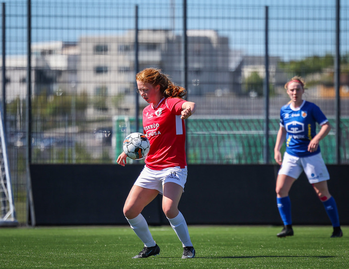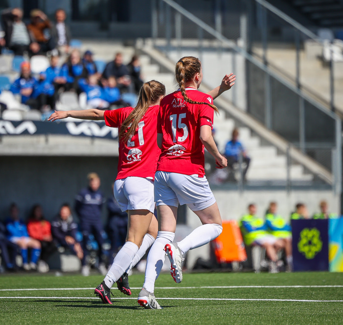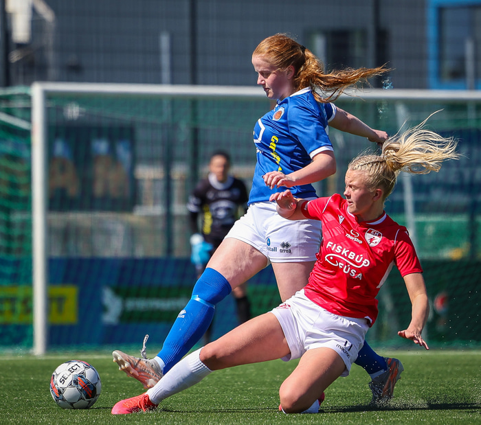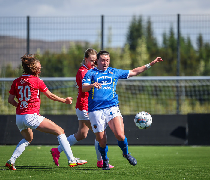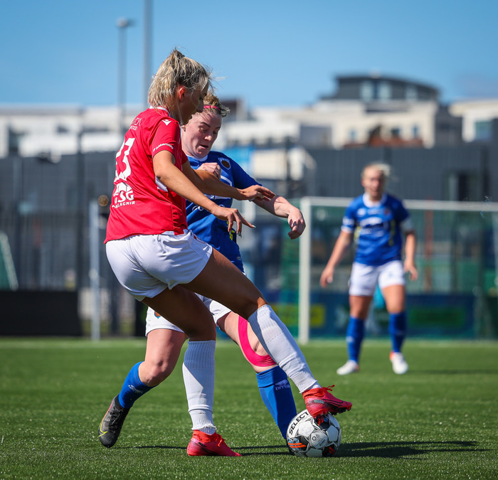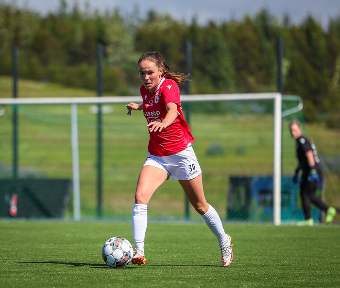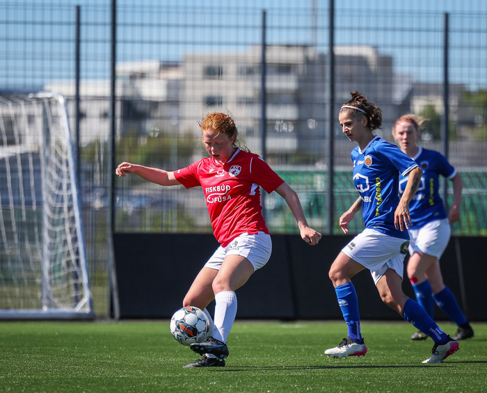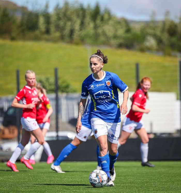 Fram vann á laugardaginn opnunarleikinn á nýjum og glæsilegum leikvangi félagsins í Úlfarsárdal. Liðið vann þá 3 - 2 sigur á KH í 2. deild kvenna. Hér að neðan má sjá fjölda mynda úr leiknum.