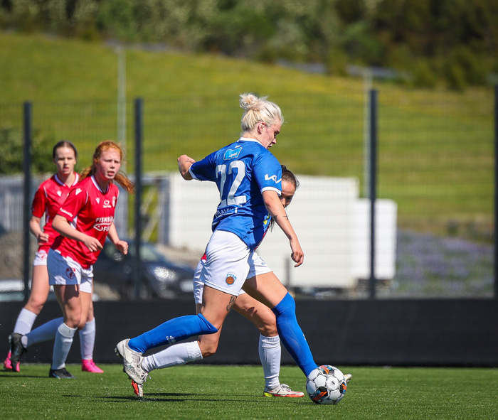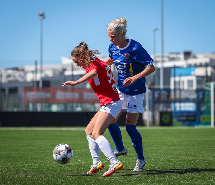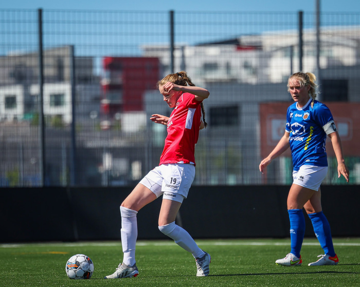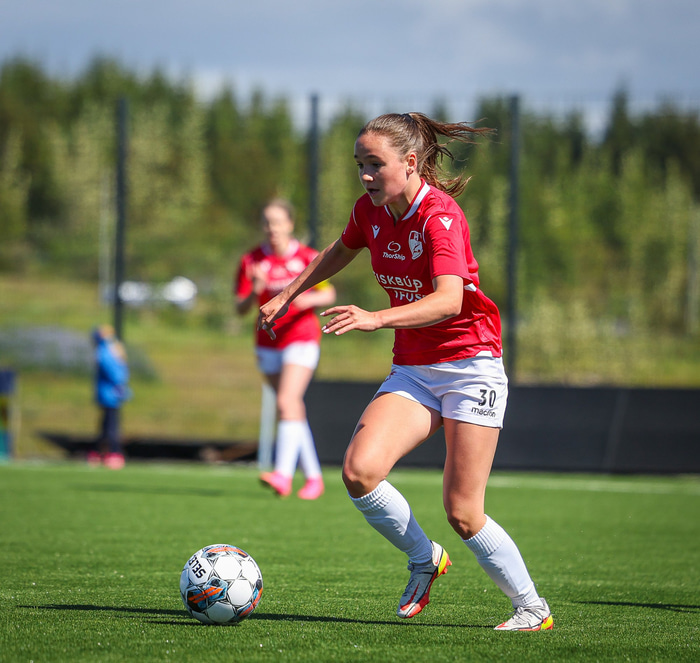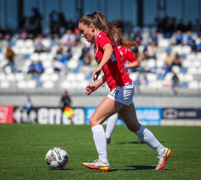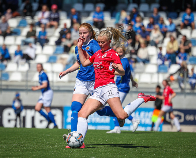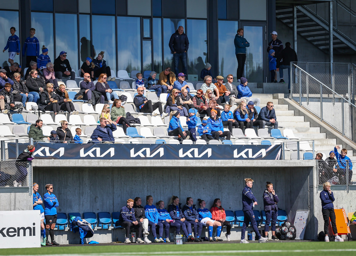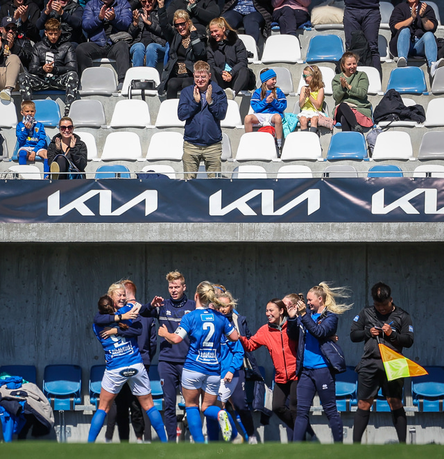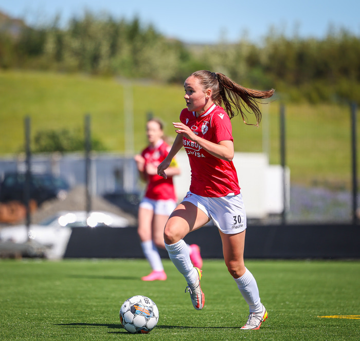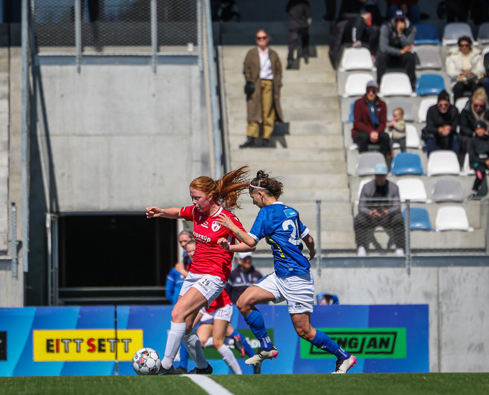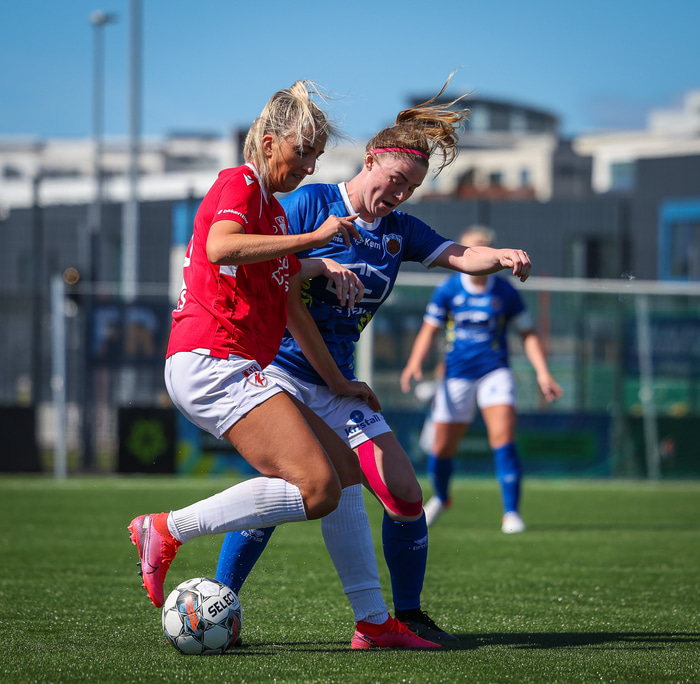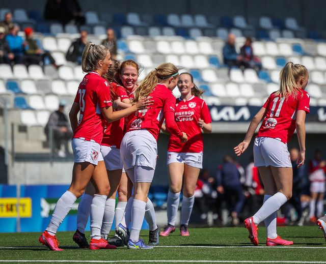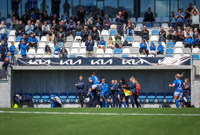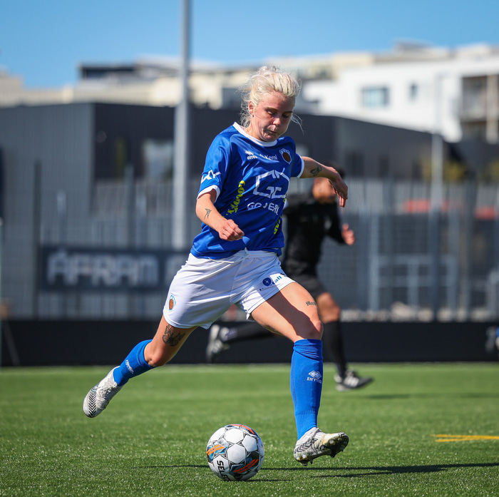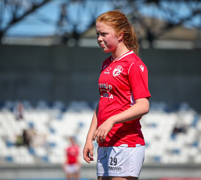 Fram vann á laugardaginn opnunarleikinn á nýjum og glæsilegum leikvangi félagsins í Úlfarsárdal. Liðið vann þá 3 - 2 sigur á KH í 2. deild kvenna. Hér að neðan má sjá fjölda mynda úr leiknum.