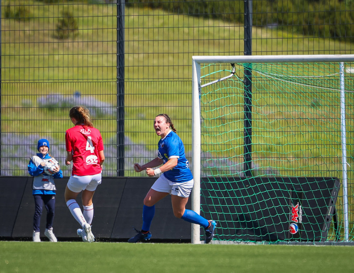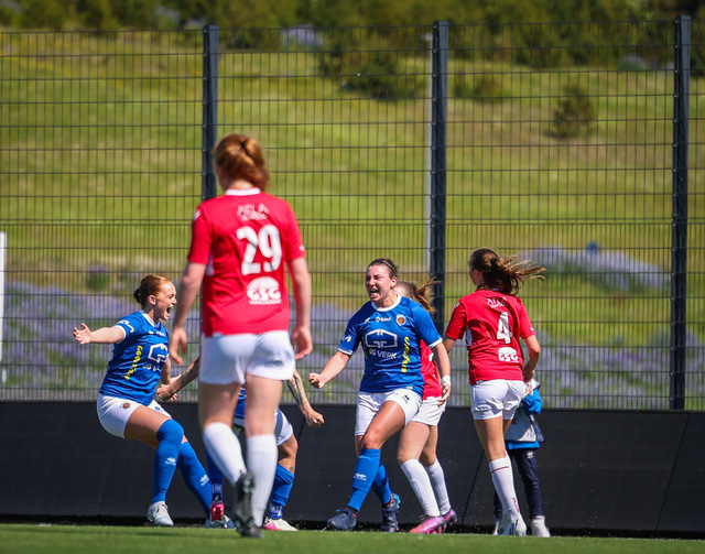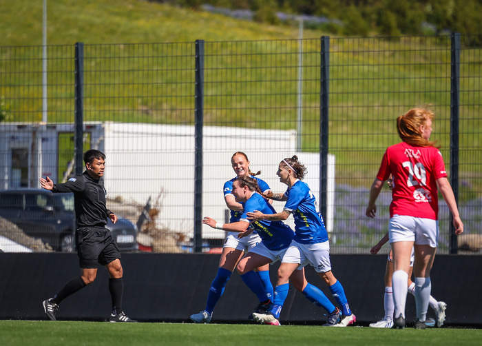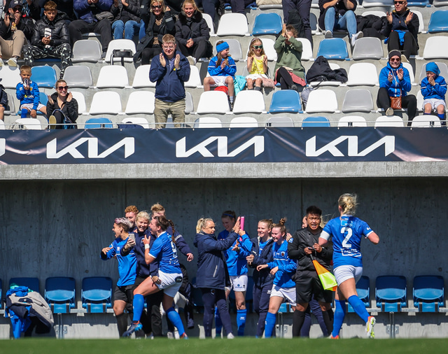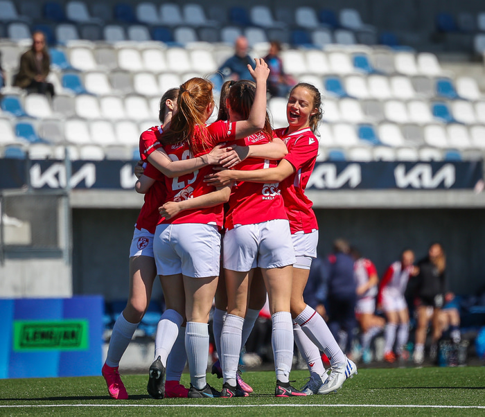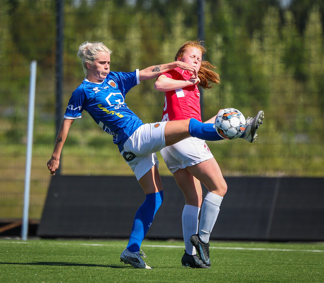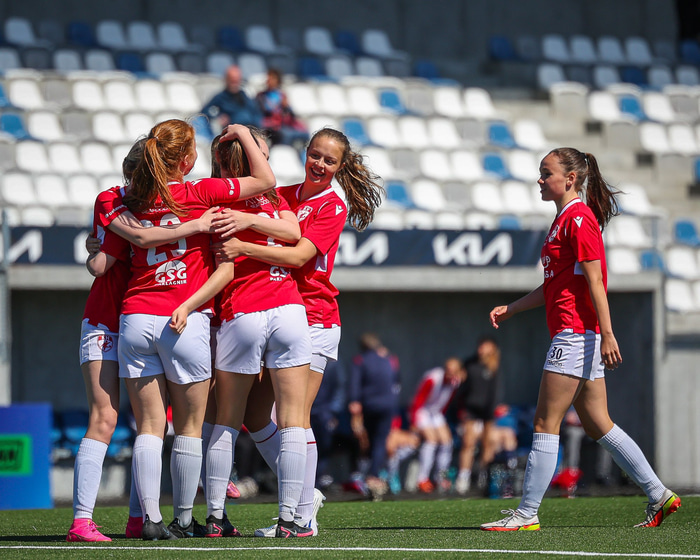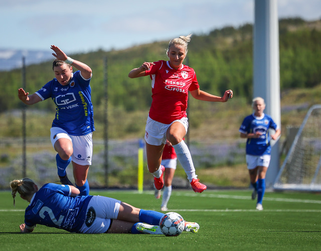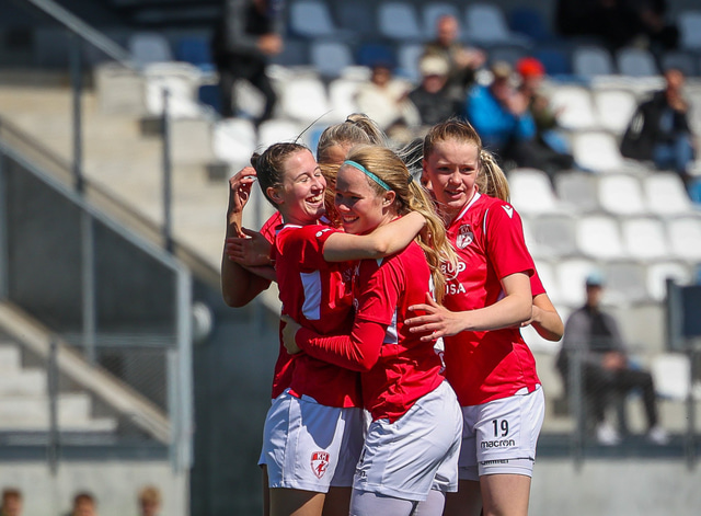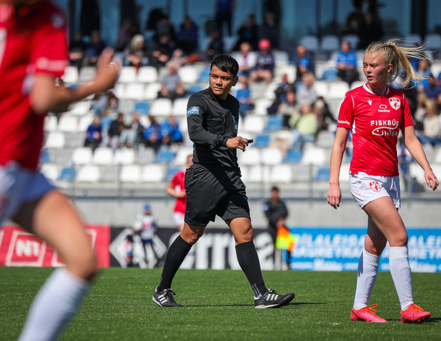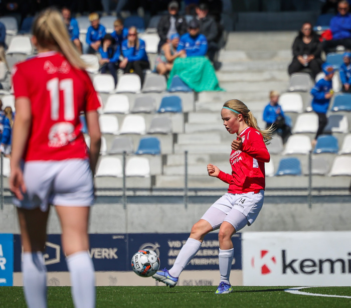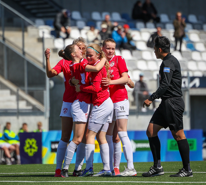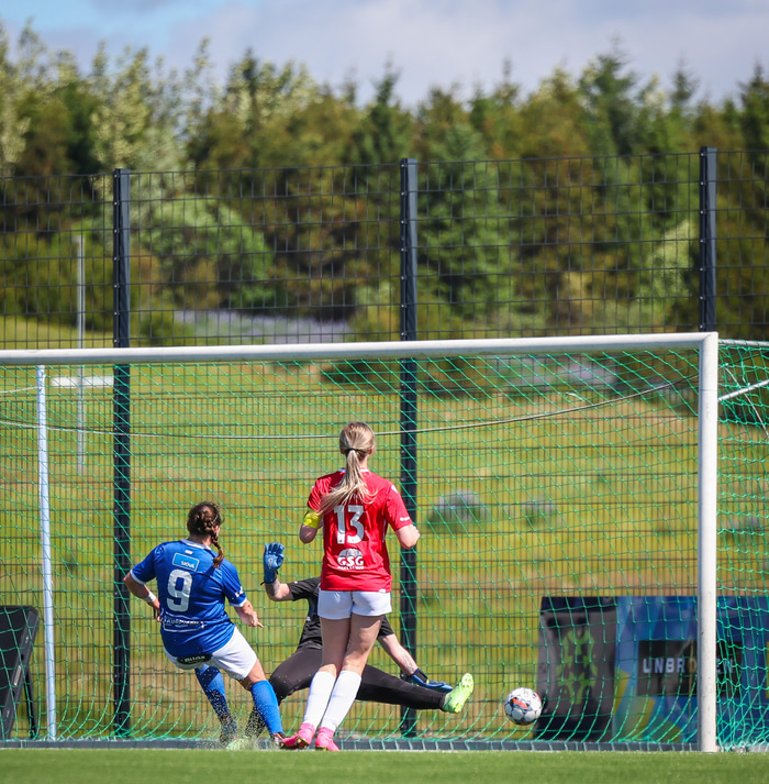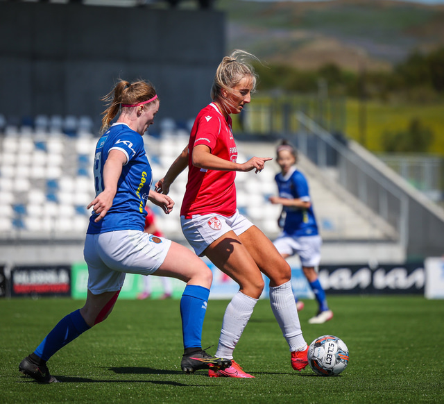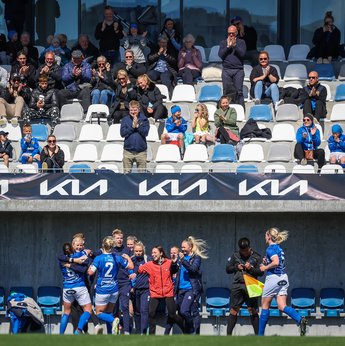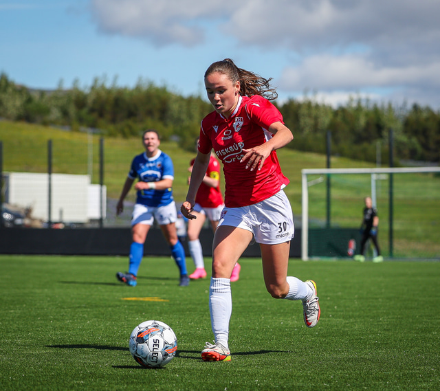 Fram vann á laugardaginn opnunarleikinn á nýjum og glæsilegum leikvangi félagsins í Úlfarsárdal. Liðið vann þá 3 - 2 sigur á KH í 2. deild kvenna. Hér að neðan má sjá fjölda mynda úr leiknum.