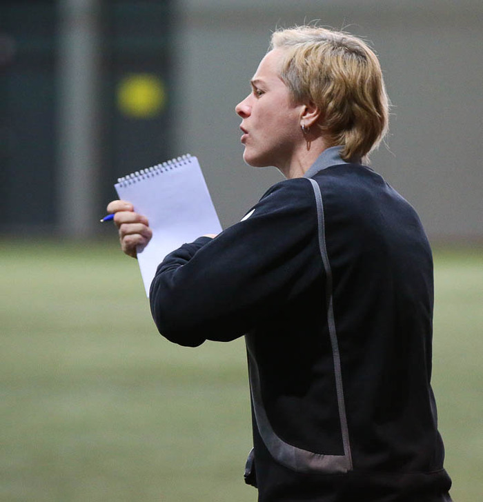 Dóra María Lárusdóttir fór í miðvarðarstöðuna eftir að Mist Edvardsdóttir sá rauða spjaldið.