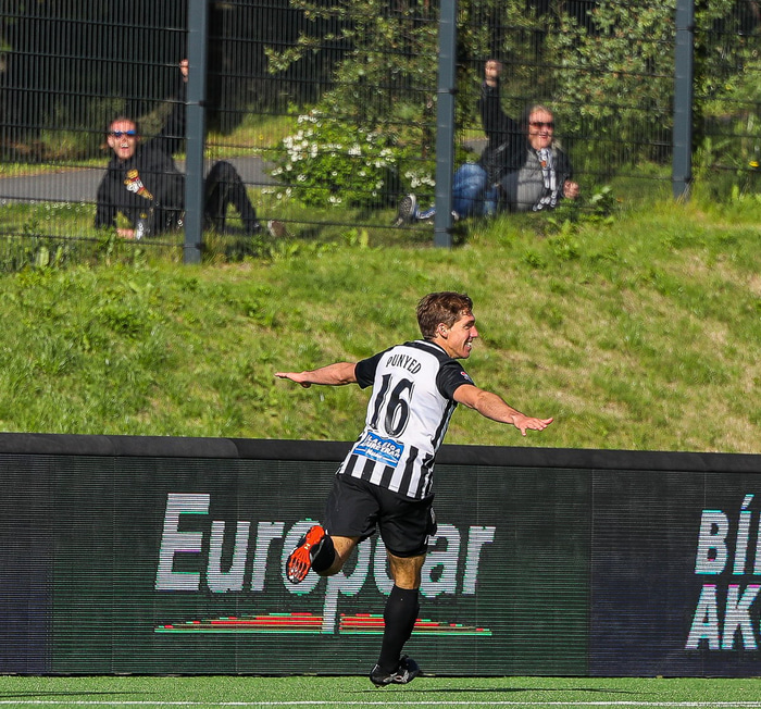 Rodrigo Gomes Mateo var maður leiksins í fyrsta sigri KA í sumar. KA lagði Gróttu 1-0 og Rodrigo er í liði umferðarinnar aðra umferðina í röð.
