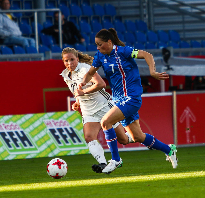 “Já, hvað á maður að segja. Fyrsti sigurinn á Þýskalandi. Bara geggjuð tilfinning,” sagði Sara Björk Gunnarsdóttir, fyrirliði Íslands, eftir fyrsta sigurinn í sögu liðsins gegn því þýska.