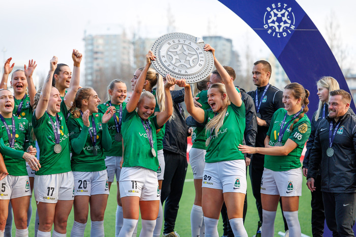 Breiðablik varð nýverið Íslandsmeistari kvenna eftir frábæra leiktíð og hampaði liðið Bestu-deildar skildinum á laugardaginn eftir 3–2 sigur á FH í síðasta leik tímabilsins, gleðin var ósvikin þegar flautað var til leiksloka.