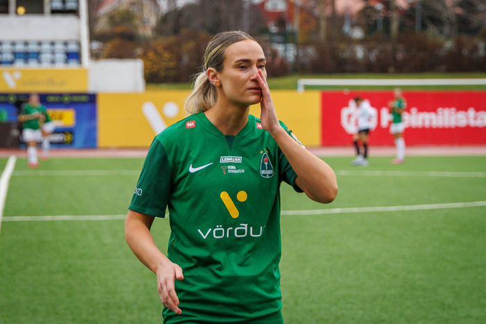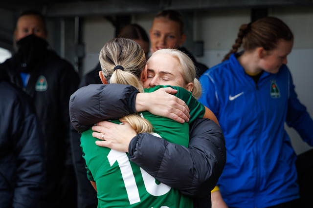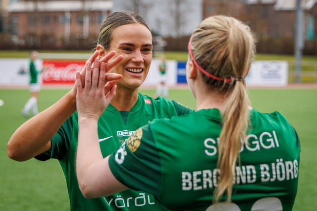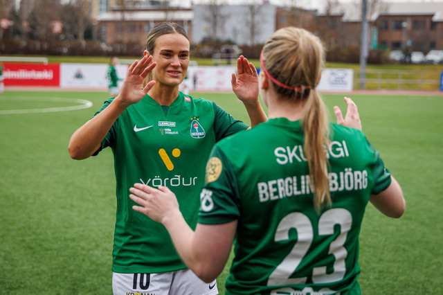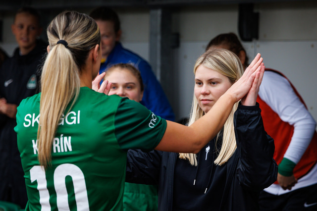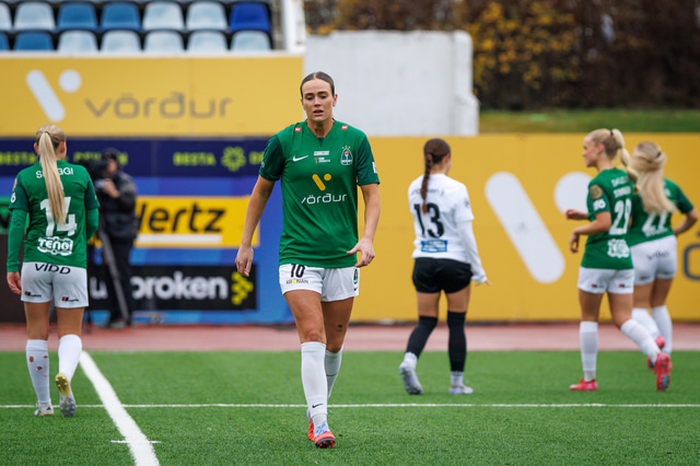 Hún byrjaði leikinn og fór svo af velli strax á 1. mínútu leiksins. Inn fyrir hana kom markadrottningin Berglind Björg Þorvaldsdóttir.