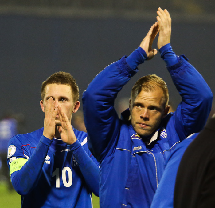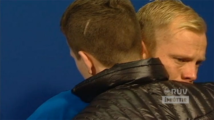 Eiður Smári Guðjohnsen hefur verið merkisberi íslenskrar knattspyrnu undanfarna áratugi. Það var því við hæfi að þessi stærsta stund íslenskrar knattspyrnu yrðu hans tímamót. Við Íslendingar munum aldrei gleyma framlagi Eiðs Smára til knattspyrnunnar og við munum aldrei gleyma þögninni löngu þegar hetjan varð að goðsögn.
