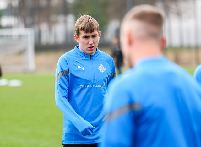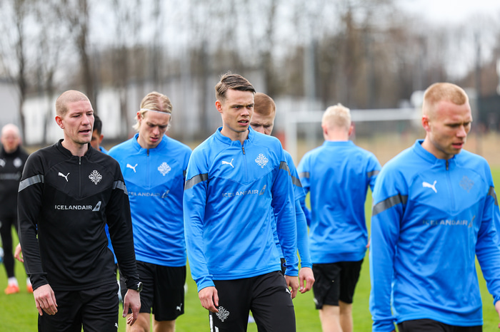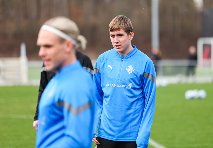 Allir leikmenn í hópnum tóku þátt í æfingunni þær fimmtán mínútur sem fjölmiðlar fengu að fylgjast með. Þar á meðal Ísak Bergmann Jóhannesson sem hefur verið veikur og lék ekki með FCK um liðna helgi.