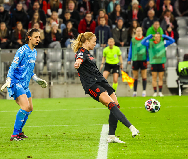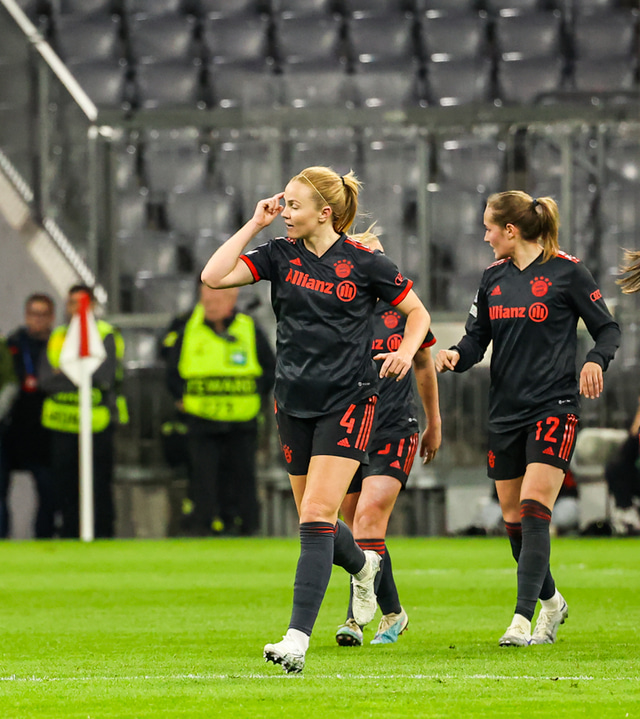 Bayern var betri aðilinn í fyrri hálfleiknum og náði forystunni undir lok hans þegar Lea Schuller skallaði boltann í netið.