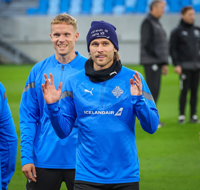Arnór Ingvi gerði virkilega flott mark og sá hann til þess að Ísland fór með forystuna inn í hálfleikinn. Arnór segir að staðan sé vonandi góð á sér eftir leikinn.