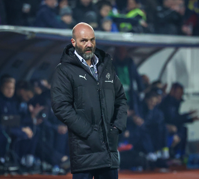 „Við erum ekki það óþolinmóðir að fara mála skrattann á vegginn eftir einn leik. Þetta eru ekki heimsins mikilvægustu leikir og við töluðum um að þetta væru mjög góðir leikir fyrir hann að fá sem fyrstu leiki. Hann getur prófað eitthvað og það er það sem við höfum kallað eftir; að fá að sjá að við séum á leið í einhverja átt. Núna sjáum við að við erum á leið í þessa átt, verðum bara að sýna því þolinmæði. Auðvitað erum við ekkert hoppandi hæð okkar þegar við töpum, það væri mjög óeðlilegt. Við sýnum honum þolinmæði, en eftir hálft ár, ef þetta er það sama og við erum að tapa öllum leikjum, þá hoppum við á bakið á honum. Við verðum að sjá framfarir. Við vitum núna í hvaða átt við ætlum að stefna; ætlum að halda í boltann, þetta mun líta pínu út eins og Víkingsliðið gerði. Svo koma sigrarnir, en þeir þurfa helst að koma fyrr en seinna," sagði Kári.