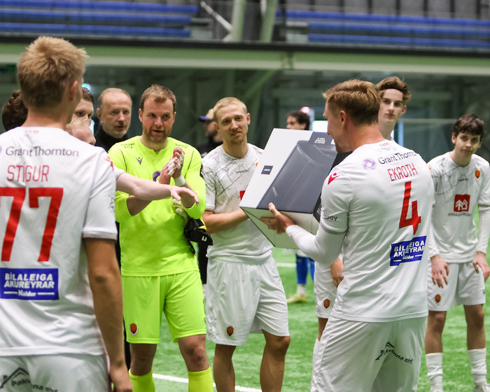 Leikurinn átti að fara fram á Samsungvellinum en var færður yfir í Miðgarð vegna veðurs.