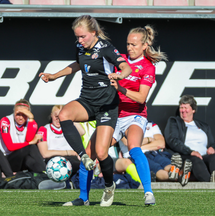 Elín Metta Jensen er búinn að reima á sig markaskóna eftir markaþurrð í upphafi móts en hún kom Val yfir í leiknum á 19. mínútu eftir klaufagang í gestaliðinu. Hún nýtti sér kæruleysi hjá gestunum og skoraði.