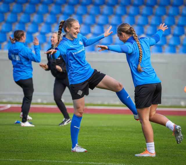Ísland æfði í Laugardalnum í gær en þetta var fyrsta æfing liðsins fyrir Evrópumót kvennalandsliða sem fer fram í Englandi í sumar. Hér að neðan má sjá myndir af æfingunni.