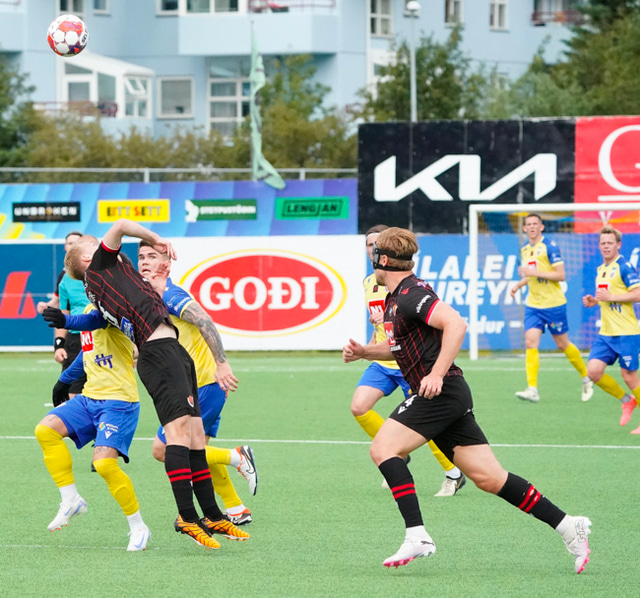 KA vann 1 - 0 sigur á Víkingi Reykjavík í Bestu-deild karla í gær. Hér að neðan er myndaveisla frá Sævari Geir Sigurjónssyni.