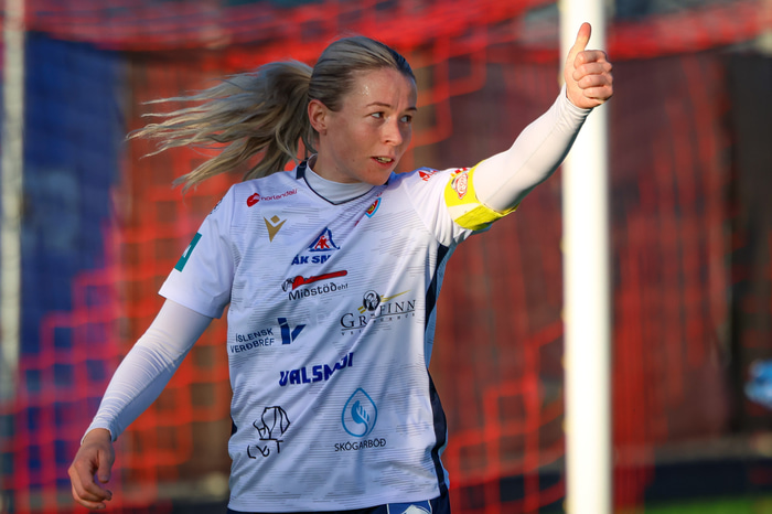 Sandra María Jessen fyrirliði skoraði eitt af fjórum mörkum í þægilegum sigri Þórs/KA gegn botnliði FHL í Bestu deildinni í kvöld.