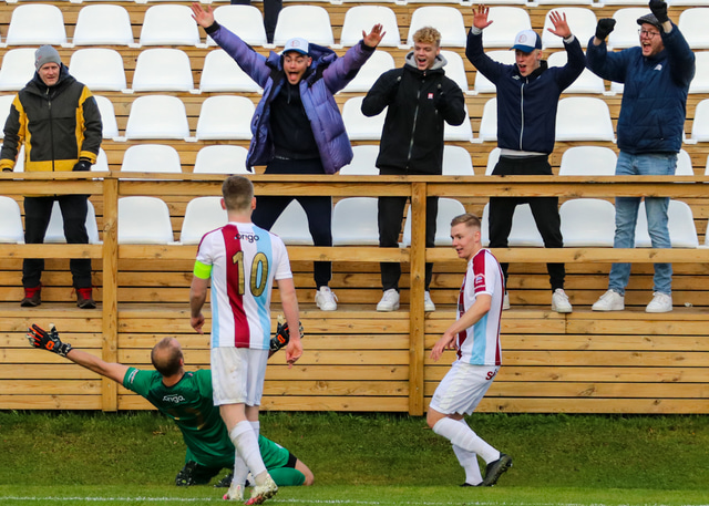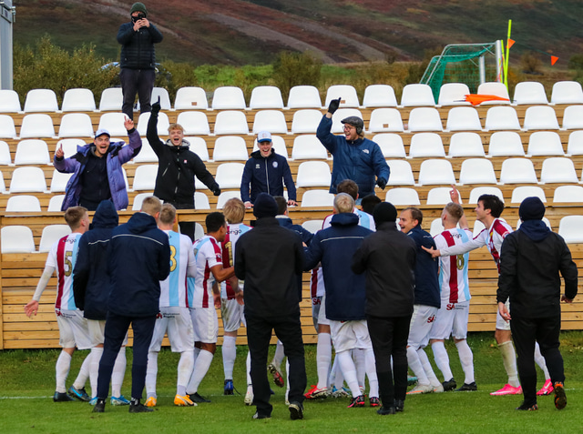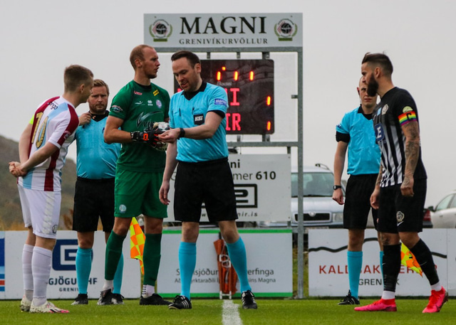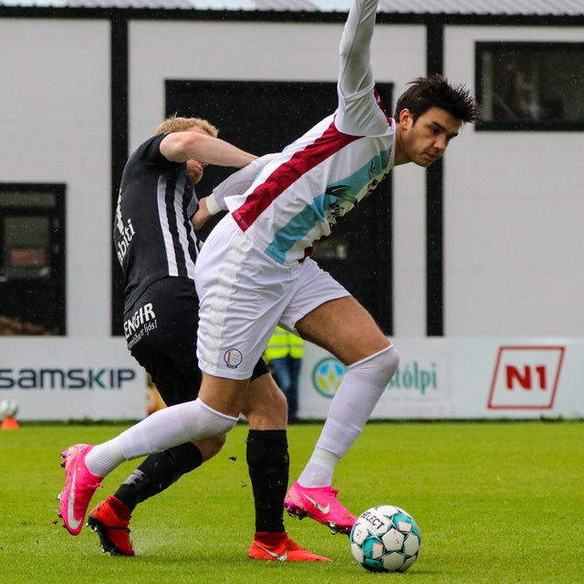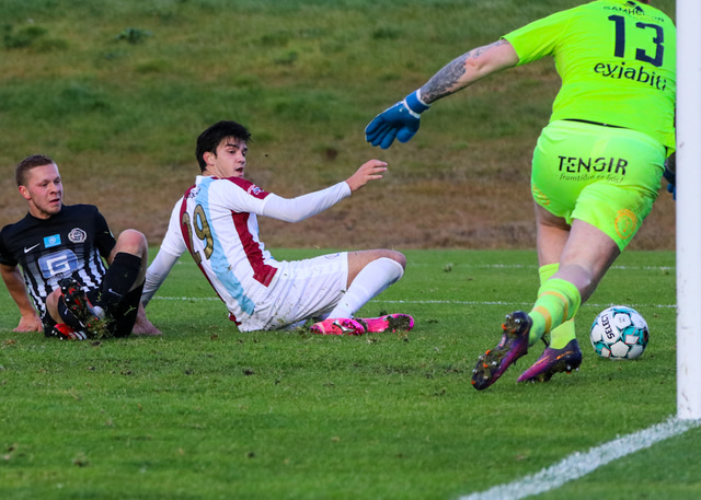 Leiknir vann 0 - 1 sigur á Magna á Grenivík í gær. Hér að neðan er myndaveisla Hauks Gunnarssonar úr leiknum.
