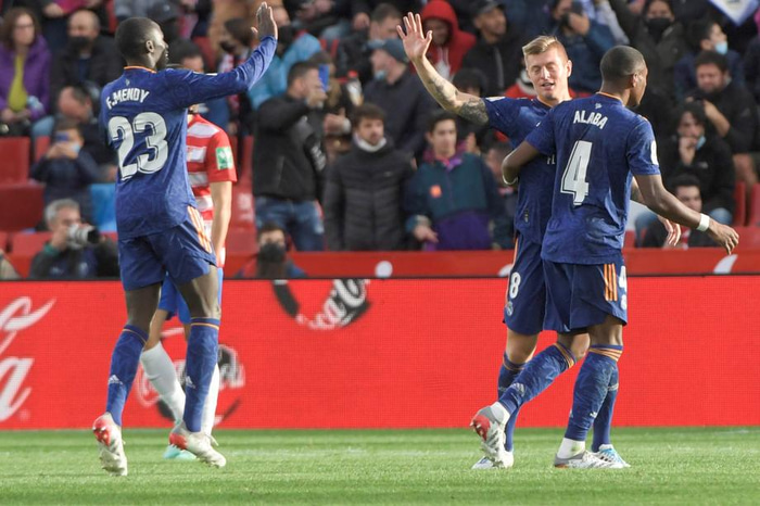 Real Madrid tyllti sér á toppinn í spænsku deildinni með 4-1 sigri á Granada. Þýski miðjumaðurinn Toni Kroos lagði upp fyrstu tvö mörk Madrídinga.