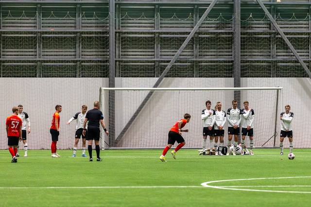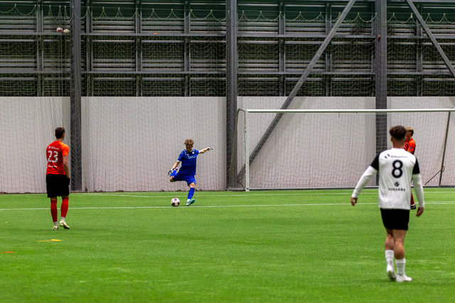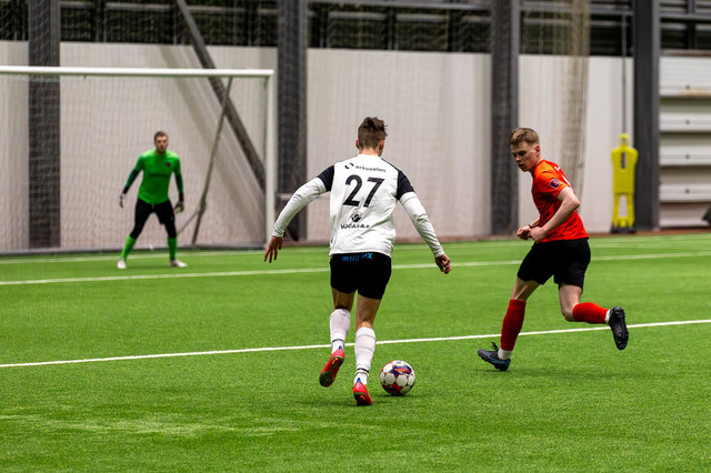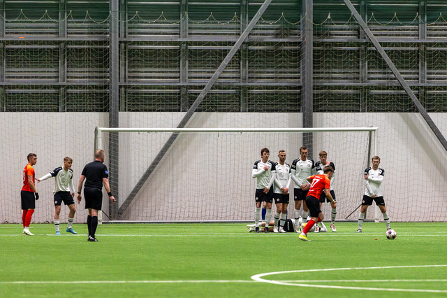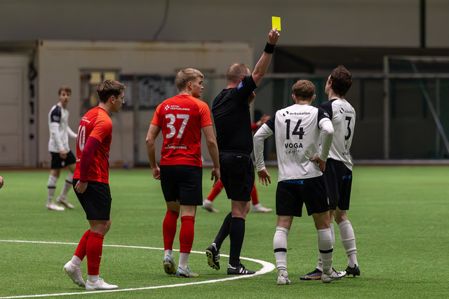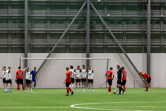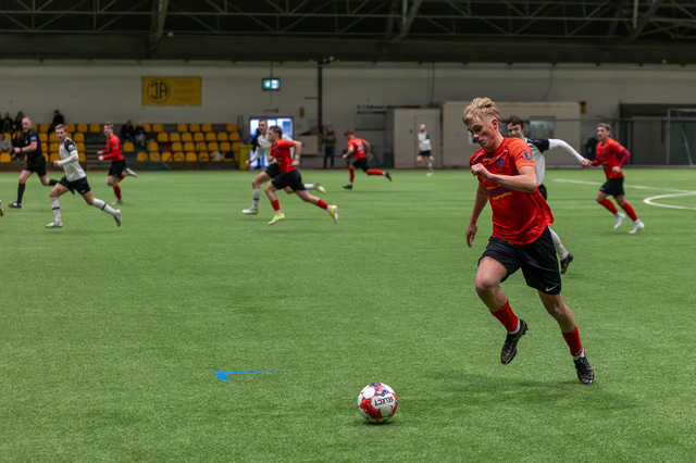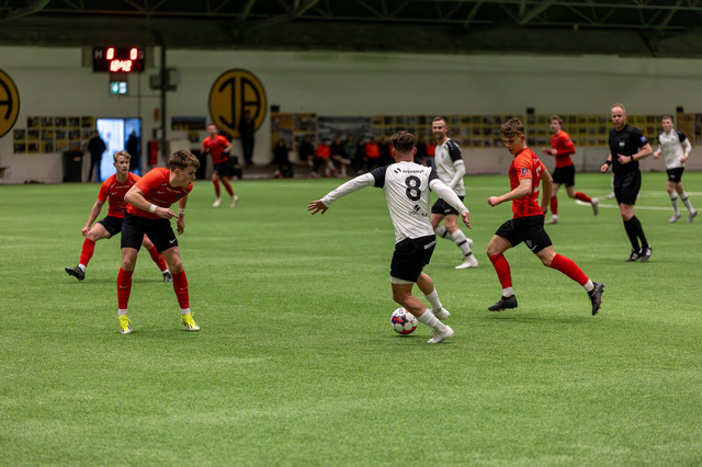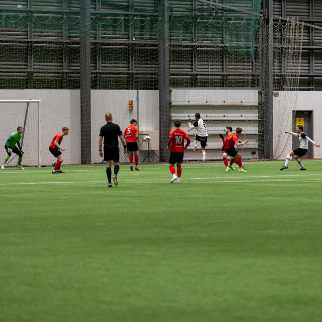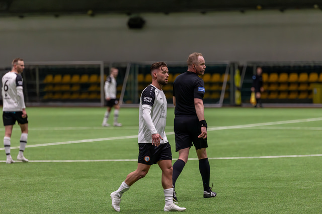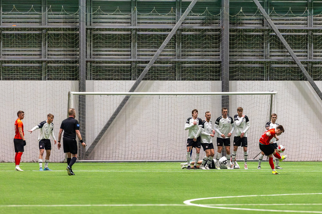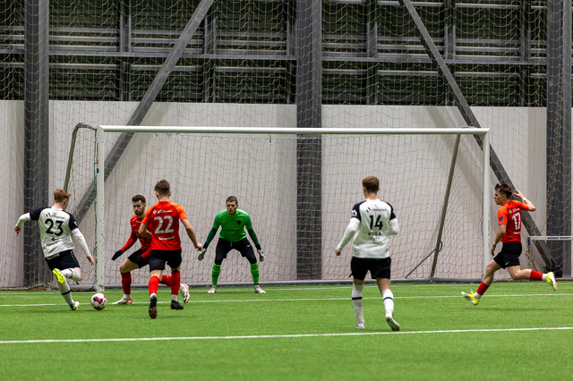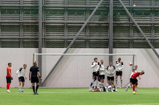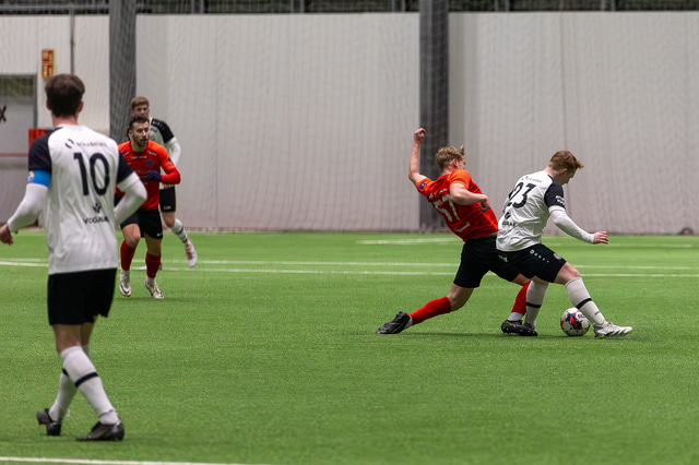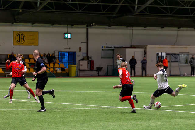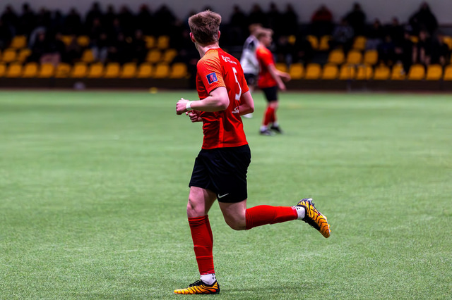 Þrótttur Vogum vann á fimmtudaginn lið Kára í Akraneshöllinni og tryggði sér þar með sæti í úrslitaleik B-deildar Lengjubikars karla. Helgi Þór Gunnarsson tók þessar myndir á leiknum.