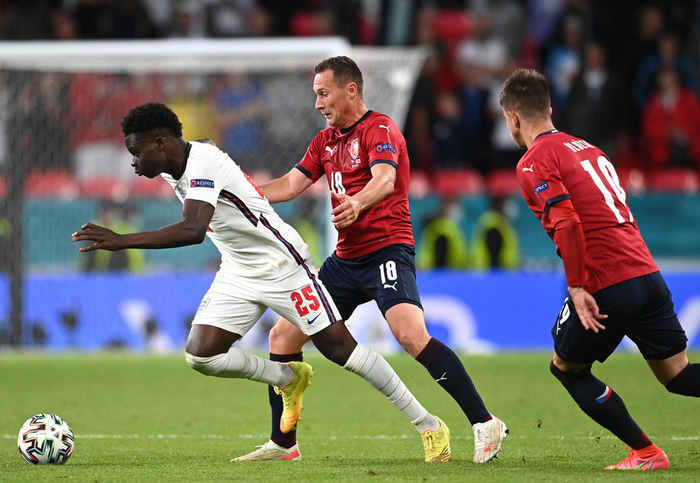 Hinn 19 ára gamli Bukayo Saka var valinn besti maður leiksins í 1-0 sigri Englands á Tékklandi í lokaleik liðanna í D-riðli Evrópumótsins en fær 8 frá Sky Sports.