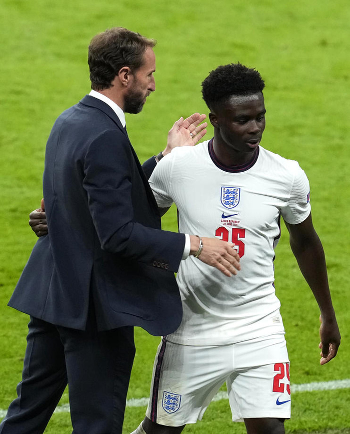 „Við höfum verið virkilega ánægðir með Bukayo Saka í þessum mánuði. Hann var magnaður þegar við spiluðum við Austurríki í Middlesbrough og okkur líkar vel við hvernig hann er með og án bolta."