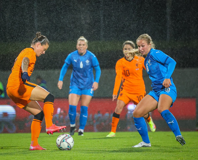 Holland vann 0 - 2 sigur á Íslandi í undankeppni HM 2023 á Laugardalsvelli í gær. Hér að neðan er myndaveisla úr leiknum.