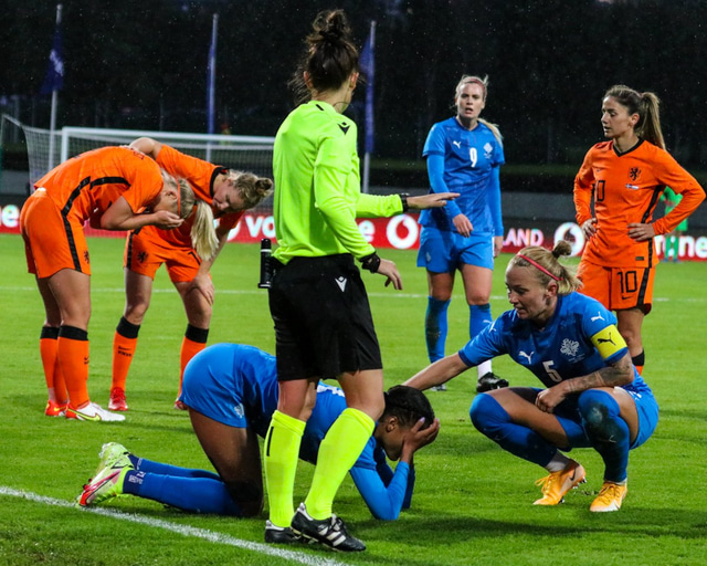 Holland vann 0 - 2 sigur á Íslandi í undankeppni HM 2023 á Laugardalsvelli í gær. Haukur Gunnarsson náði þessum myndum á leiknum.