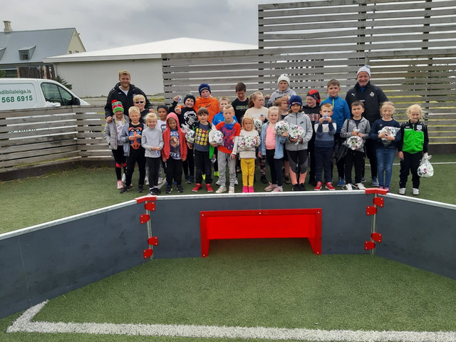 Súðavík mætti okkur í miklum vindi og rigningu, Covid að hræða okkur aðeins, en við mættum og tókum allt á fullt. 3 krakkar og 2 foreldrar ásamt Halldóri mætt. Krakkarnir fengu að spreyta sig á pönnuvellinum í klukkutíma. Inn á milli hleyptum við foreldrunum í bolta, allir velkomnir í pönnubolta. Enginn munur á gleði barnanna eða foreldranna enda fótbolti skemmtilegur. Halldór æstur í að kaupa pönnuvöll og væri það frábært fyrir Súðavík að eignast svona völl.