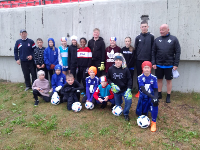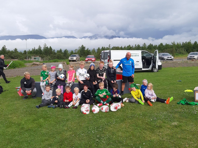 Þvílíkur hópur, 18 krakkar mættir og flestir frá því í fyrra, ætlaði enginn að missa af þessu. Topp þjálfari Bjarki, agi og virðing til fyrirmyndar. Ég spurði Bjarka rétt fyrir upphaf æfingar: -Bjarki, þetta er næstum því sami hópur og í fyrra , eigum við ekki að sleppa pönnuvellinum núna. Svarið var einfalt, ertu ruglaður, krakkarnir eru búnir bíða eftir þessu alla vikuna. Ég gæti alveg verið 365 daga á ári með þessum krökkum og Bjarka, jákvæðni og kraftur á Hofsós. Einn strákur kom frá Fljótunum sem er klukkustundar keyrsla aðra leiðina, þetta gefur lífinu gild . Klöppum fyrir þessum strák og foreldrum hans.