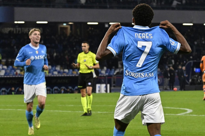 David Neres skoraði fyrstu tvö mörk leiksins og setti Noa Lang þriðja markið skömmu fyrir leikhlé, svo staðan var orðin 3-0 í leikhlé. Heimamenn voru sterkari og nýttu færin sín gríðarlega vel svo Raffaele Palladino þjálfari gestanna gerði tvöfalda skiptingu í leikhlé, þar sem Gianluca Scamacca og Odilon Kossounou komu inn.