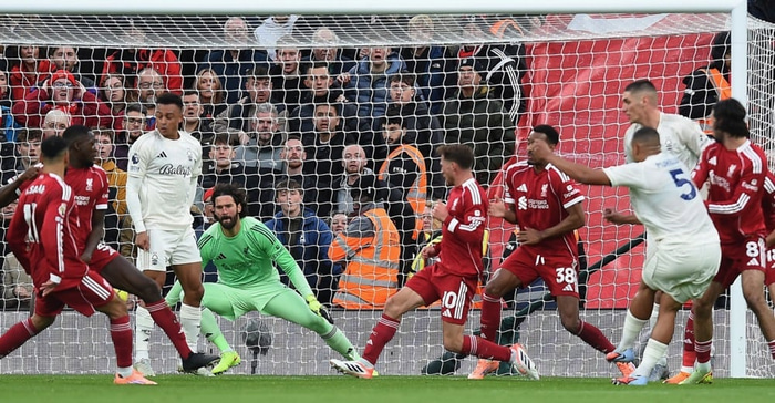 Dan N'Doye, framherji Forest, var í rangstöðu og virtist trufla sjónlínu Alisson þegar Murillo skaut boltanum, en markið fékk að standa.