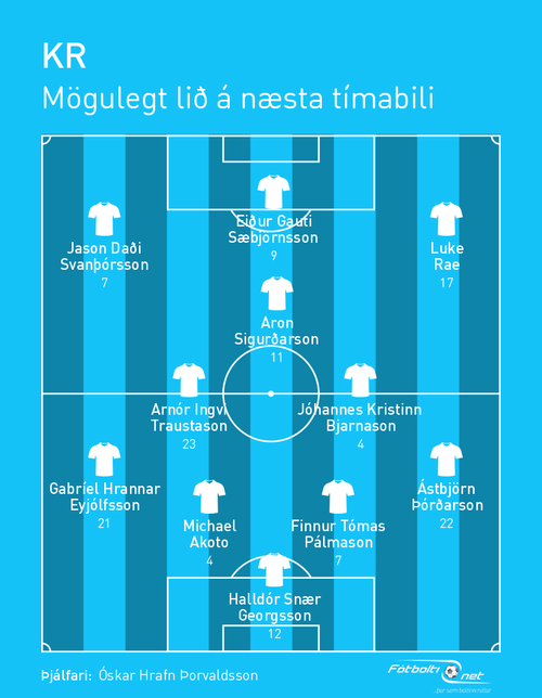 Þarna bætum við líka við Jason Daða Svanþórssyni, leikmanni Grimsby á Englandi. Hann hefur verið orðaður við Breiðablik og KR. Jóhannes Kristinn Bjarnason er þá orðaður í burtu frá Kolding í Danmöku og spurning hvort hann gæti snúið aftur heim í KR en við setjum hann líka í þetta lið en eins og áður segir er þetta bara mögulegt lið.