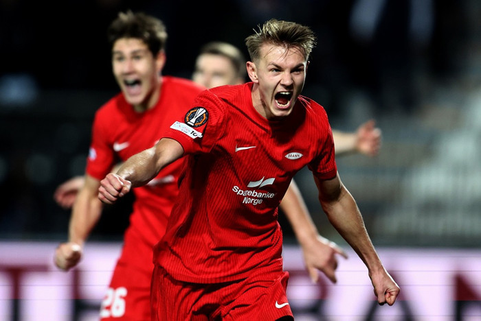 Brann, liðið sem Freyr Alexandersson stýrir, gerði 3-3 jafntefli gegn Midtjylland í stórskemmtilegum Evrópudeildarleik í gær. Eftir leik fór Emil Kornvig, sóknarmiðjumaður Brann, að stuðningsmönnum og þakkaði fyrir sig.
