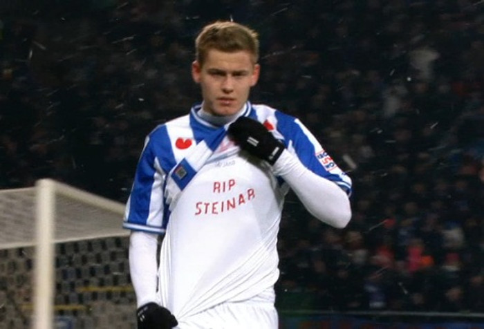 Alfreð Finnbogason tileinkaði Steinari Ingimundarssyni markið sem hann skoraði í kvöld. Alfreð skoraði mikilvægt sigurmark fyrir Heerenveen gegn Twente í hollenska boltanum.