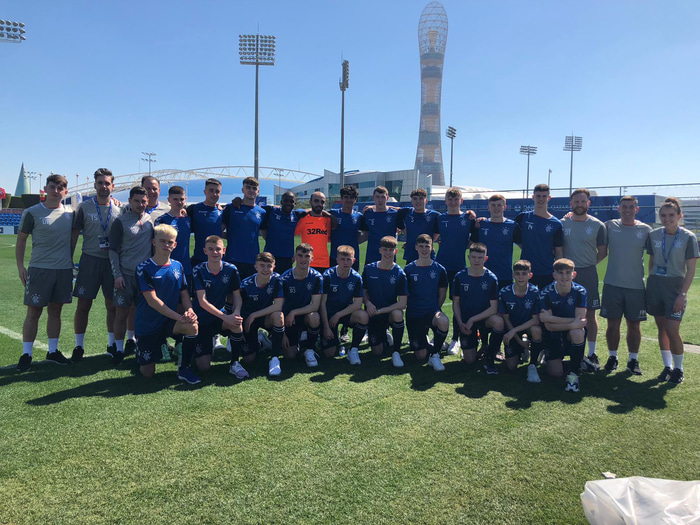 Rangers er að keppa í stóru unglingamóti í Katar og mætti Aspire Academy í dag. Staðan var 2-2 þegar Jóhannes gerði þriðja mark Rangers með því að lyfta boltanum skemmtilega yfir markvörð Aspire sem var kominn langt út úr markinu.