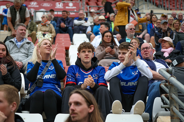 Hafliði Breiðfjörð er með myndavélina í Murcia, þar sem leikurinn fer fram, og smellti af myndum af Íslendingum í stúkunni.