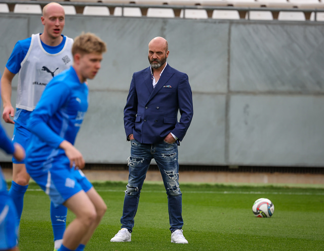 Leikur Íslands og Kósovó fer að hefjast. Kósovó vann fyrri leikinn 2-1 og möguleiki á að leikurinn í dag endi í framlengingu og jafnvel vítakeppni.