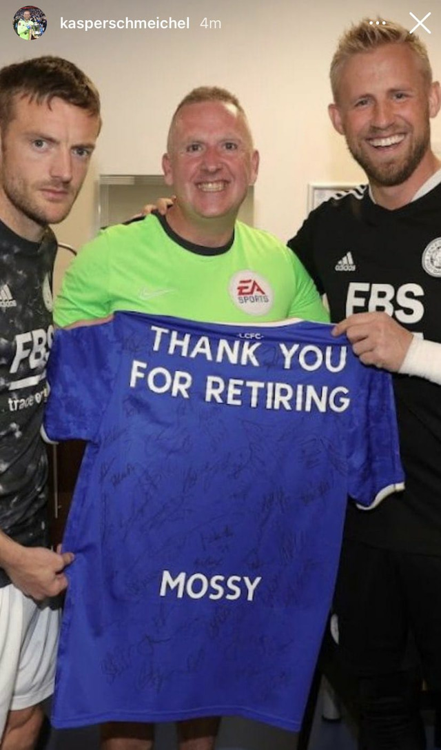 Þeir endurlaunuðu honum greiðann með kveðjugjöfinni þar sem þeir afhentu honum merkta Leicester treyju.