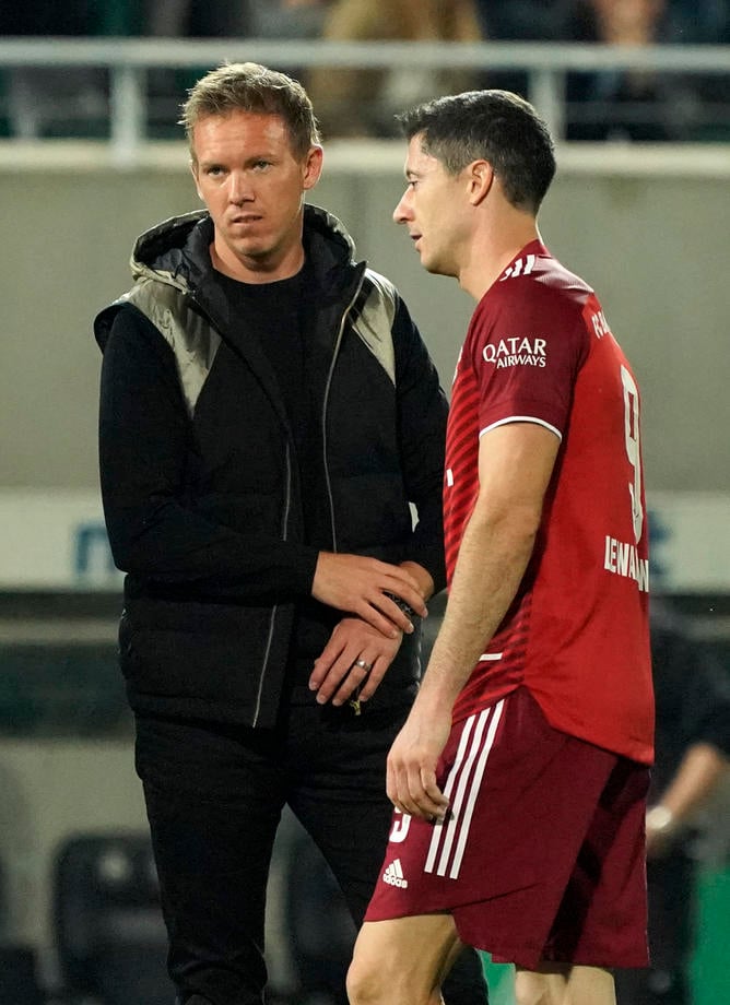 Stjórnendur Bayern hafa sagt í viðtölum að þeir ætli ekki að hleypa Lewandowski frá félaginu áður en samningurinn rennur út og þeim líður ekki eins og þeir séu að neyða hann til neins - hann skrifaði jú undir samning.
